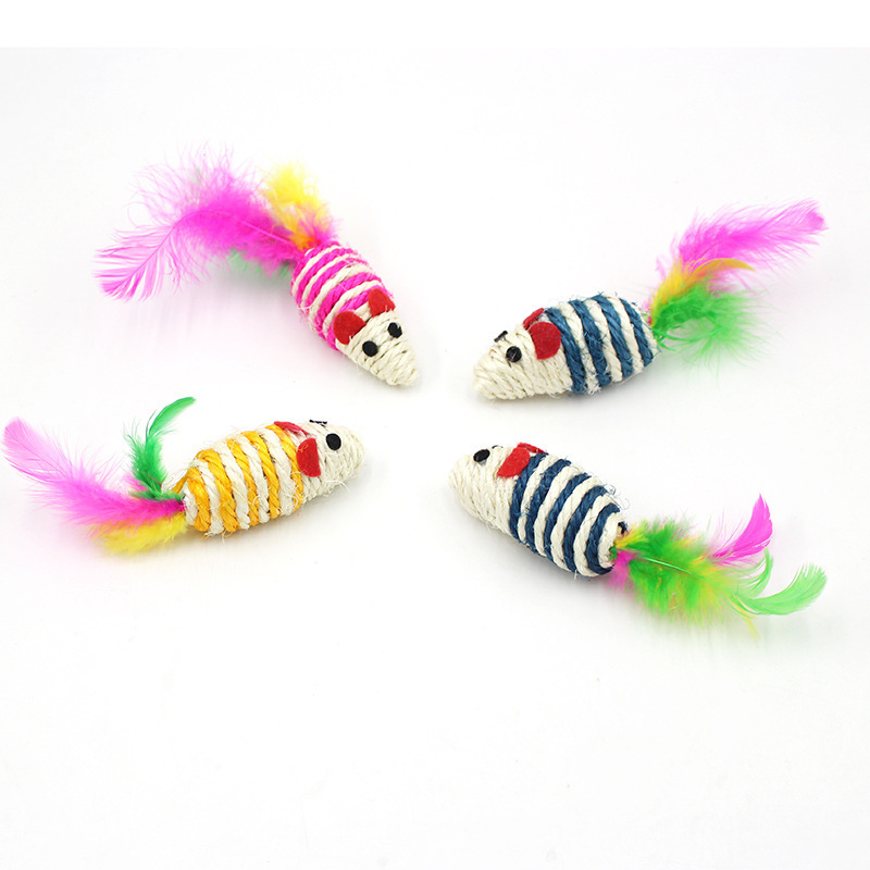 공장 직접 사이 잘삼 마우스 색상 깃털 꼬리 마우스 고양이 내마모성 물린 장난감 재미있는 고양이 장난감 도매스토어 가기