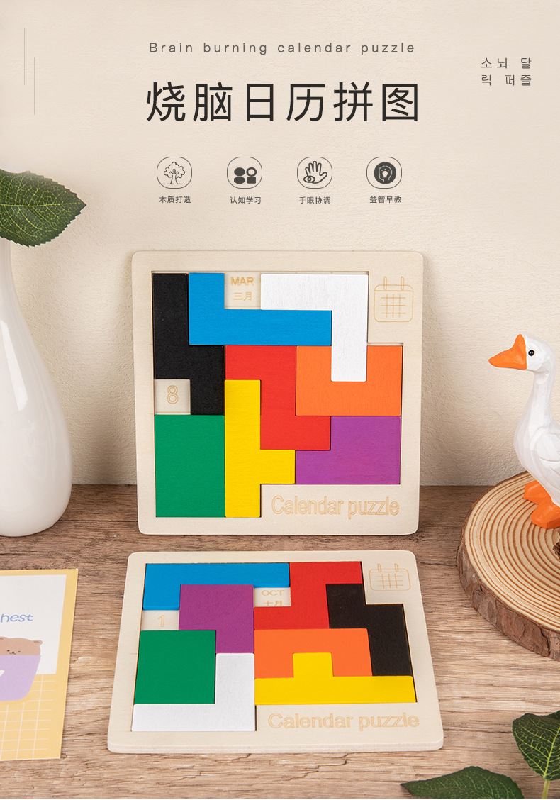 출처 제조업체 교육 과학 및 교육 어린이 장난감 orro 사각형 나무 뇌 불타는 달력 비행기 퍼즐 도매
