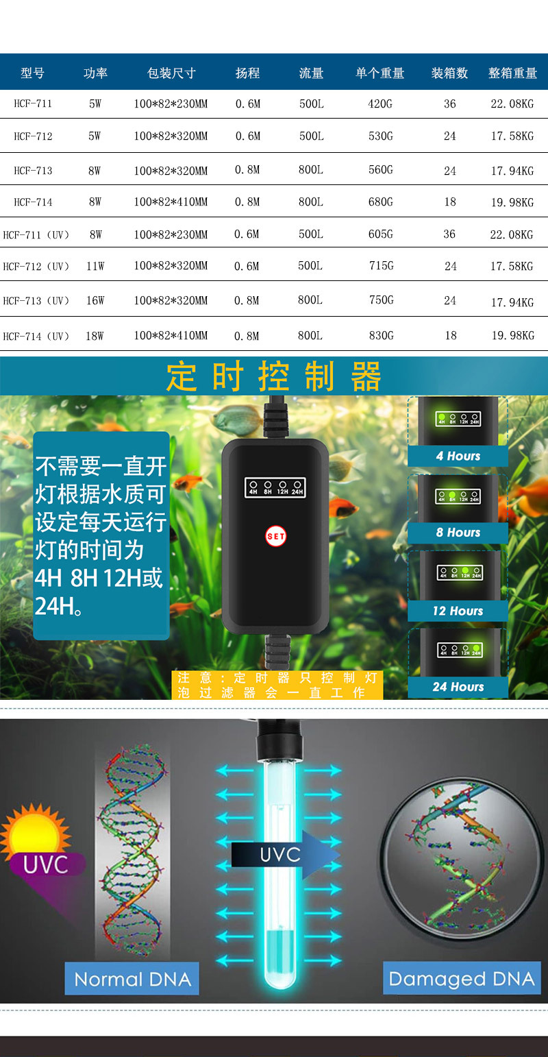 • HCF-714-UV 어항 물 정화 살균 필터