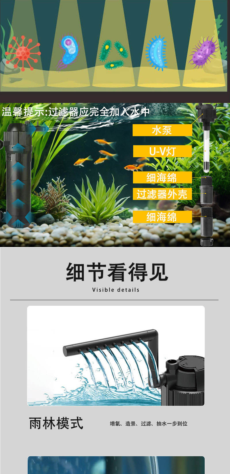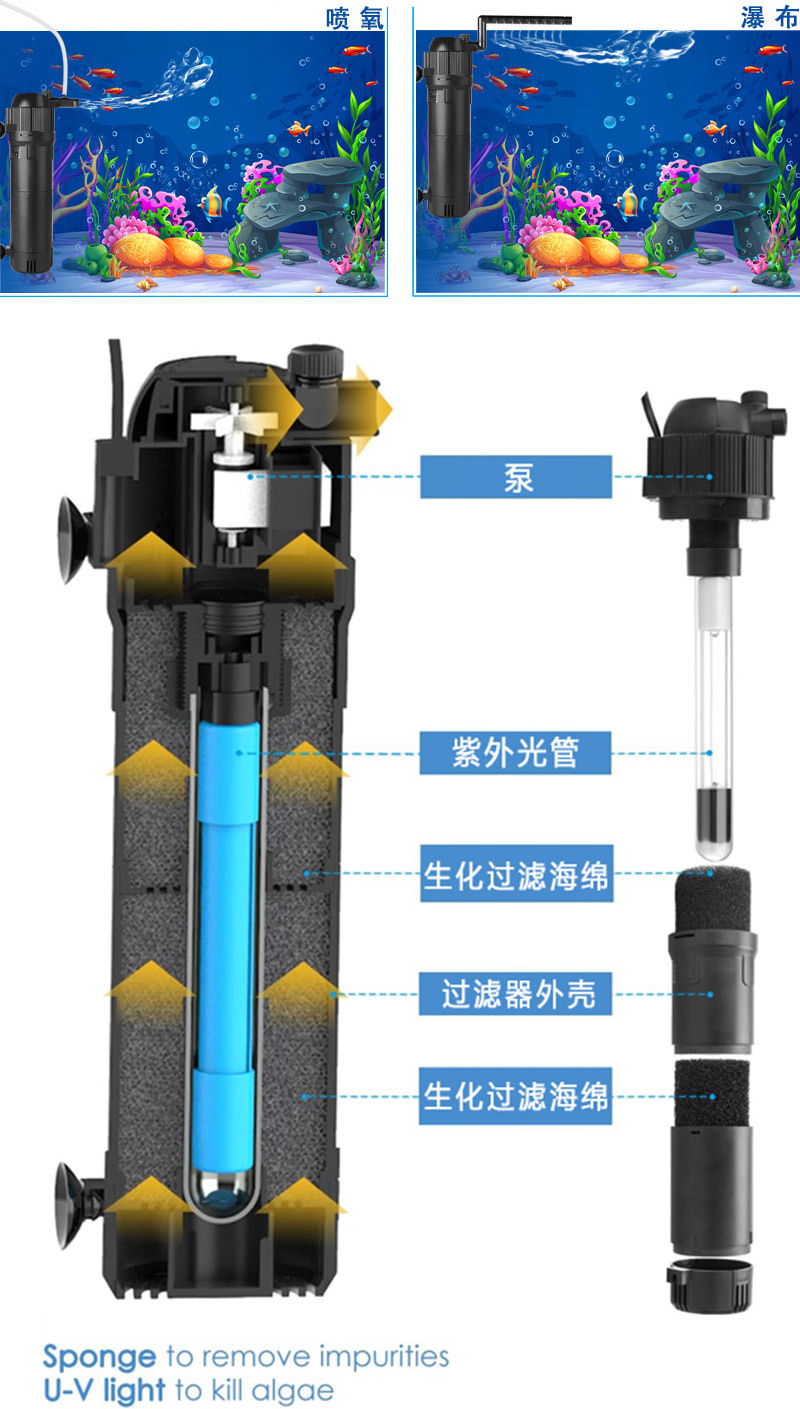 아마존 폭발 UV 살균 어항 필터 산소 기계 3 대 1 무음 어항 물 펌프 필터 필터스토어 가기