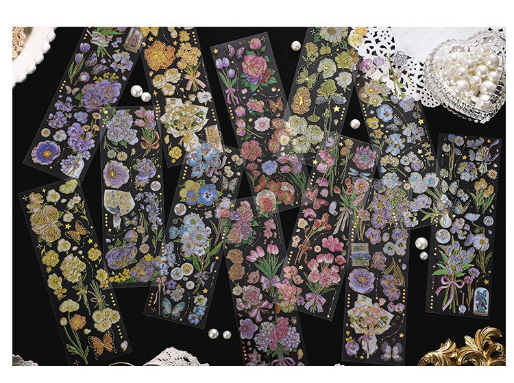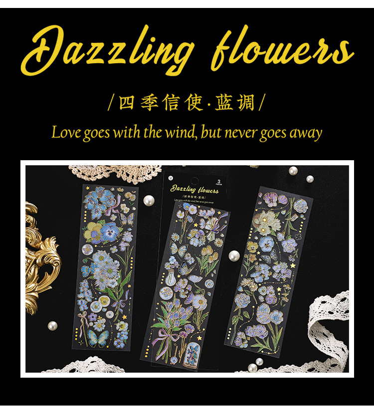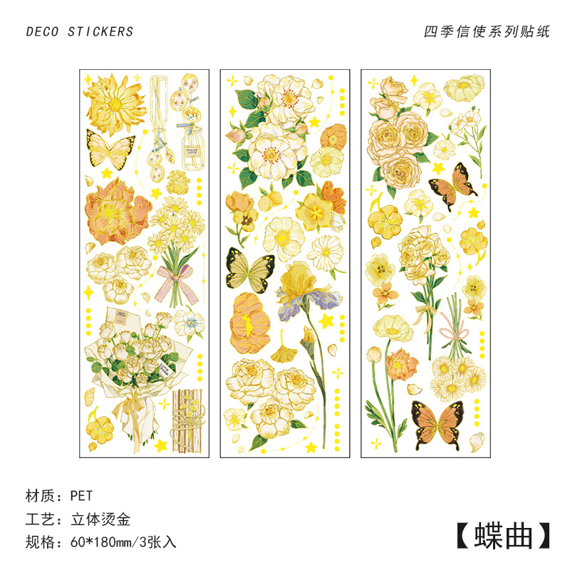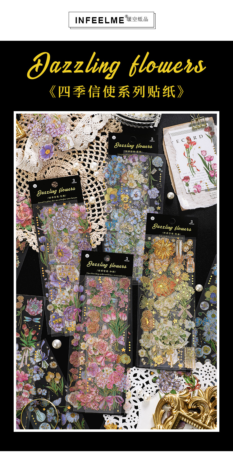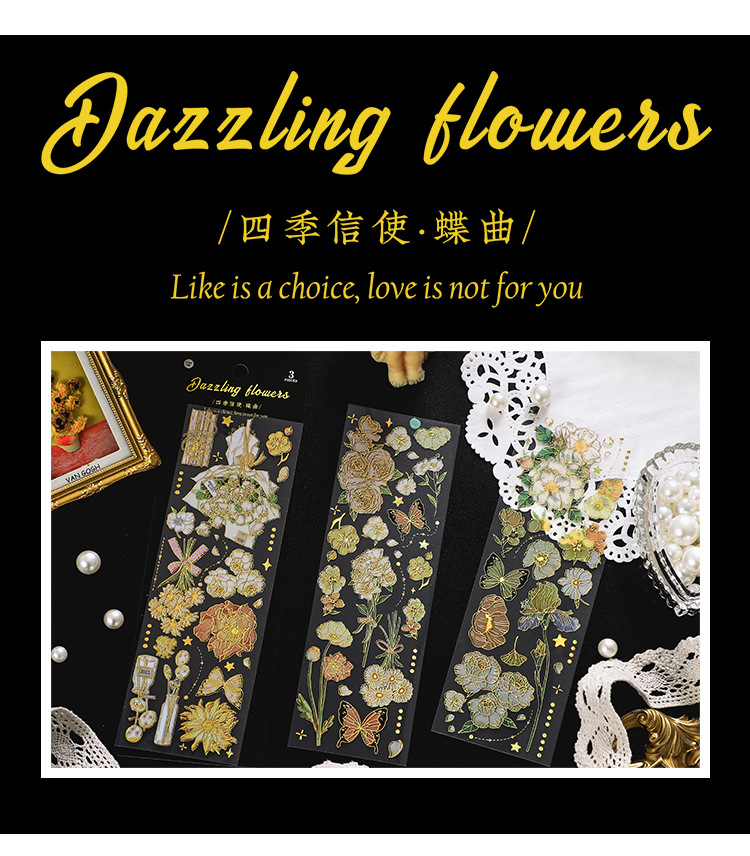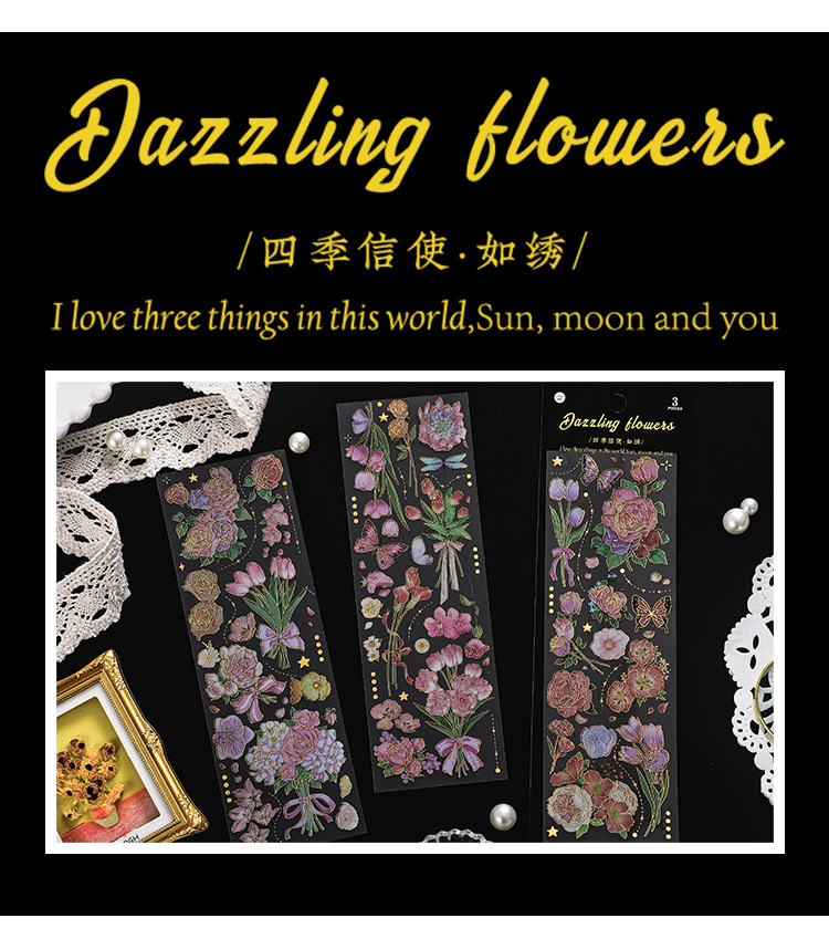 인필. 나 도금 스티커 사계절 메신저 시리즈 국경 복고풍 꽃 diy 손 계정 소재 콜라주스토어 가기