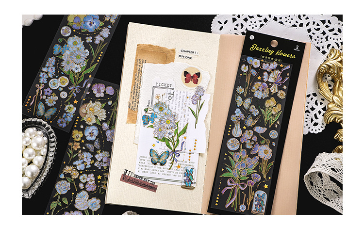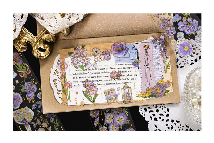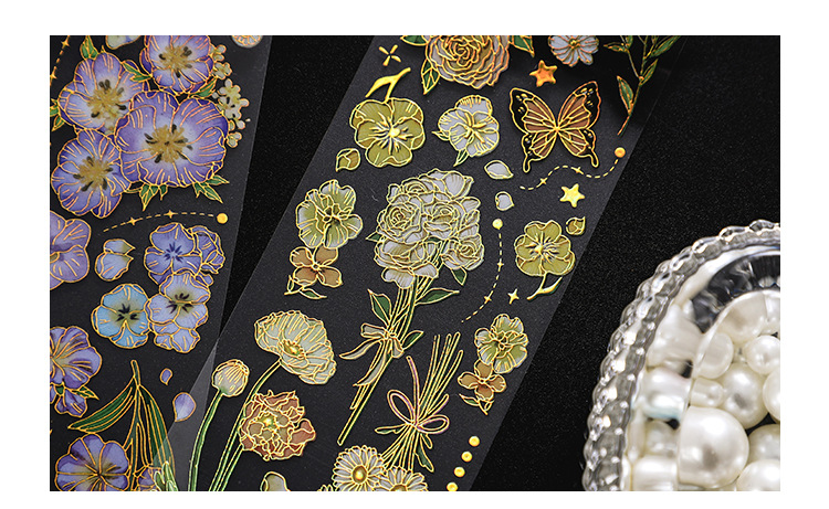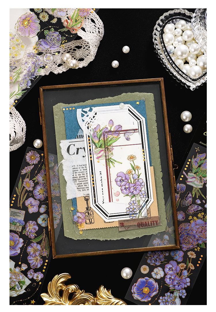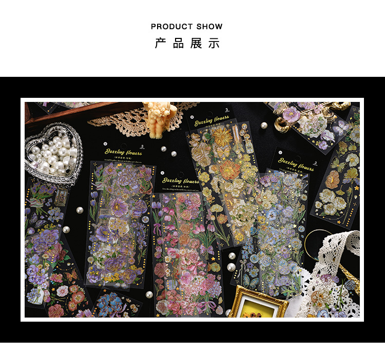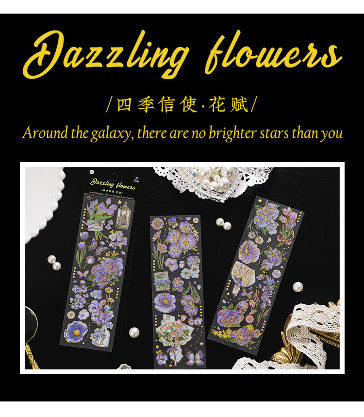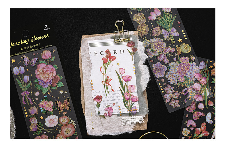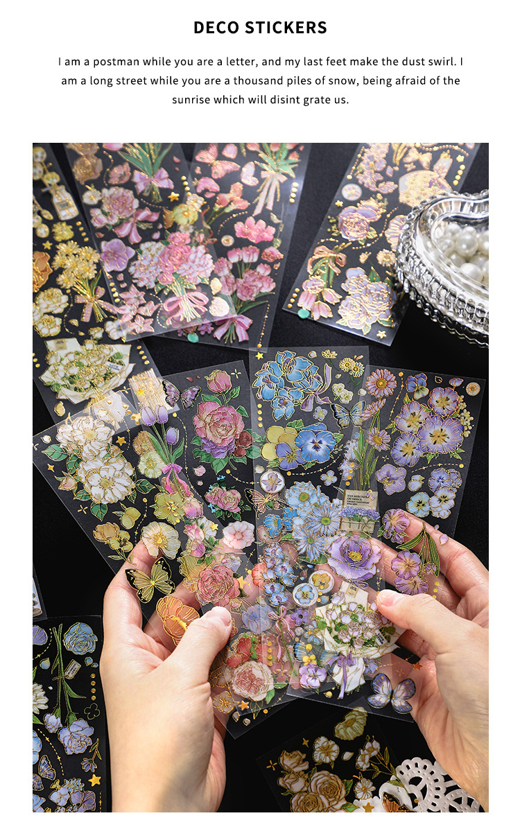 인필. 나 도금 스티커 사계절 메신저 시리즈 국경 복고풍 꽃 diy 손 계정 소재 콜라주스토어 가기