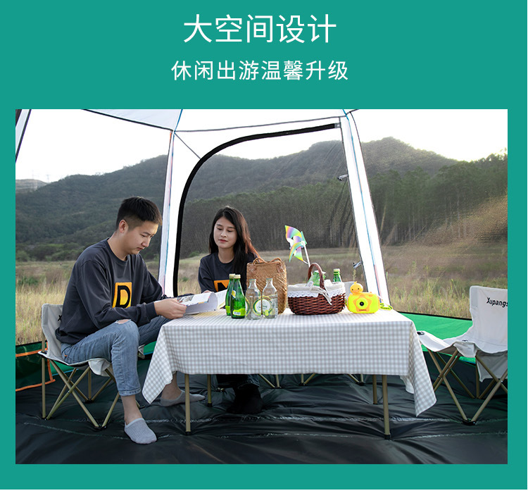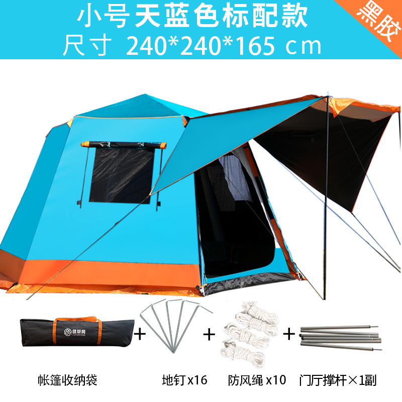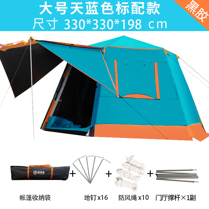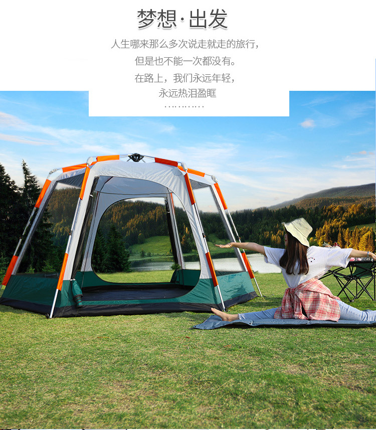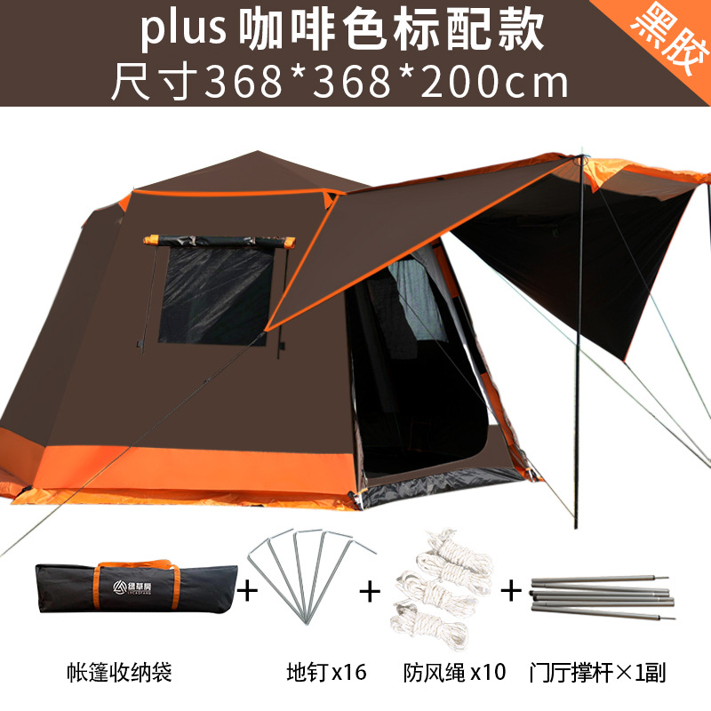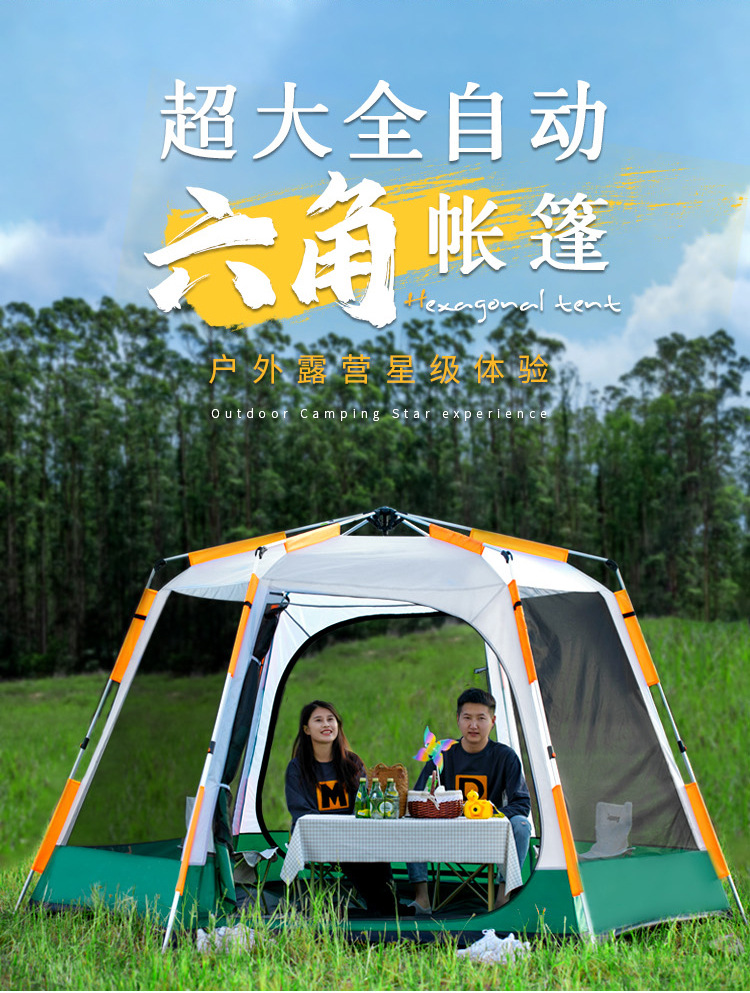 帐篷户外便携式折叠全自动六角铝杆速开黑胶野营加厚防雨露营室内