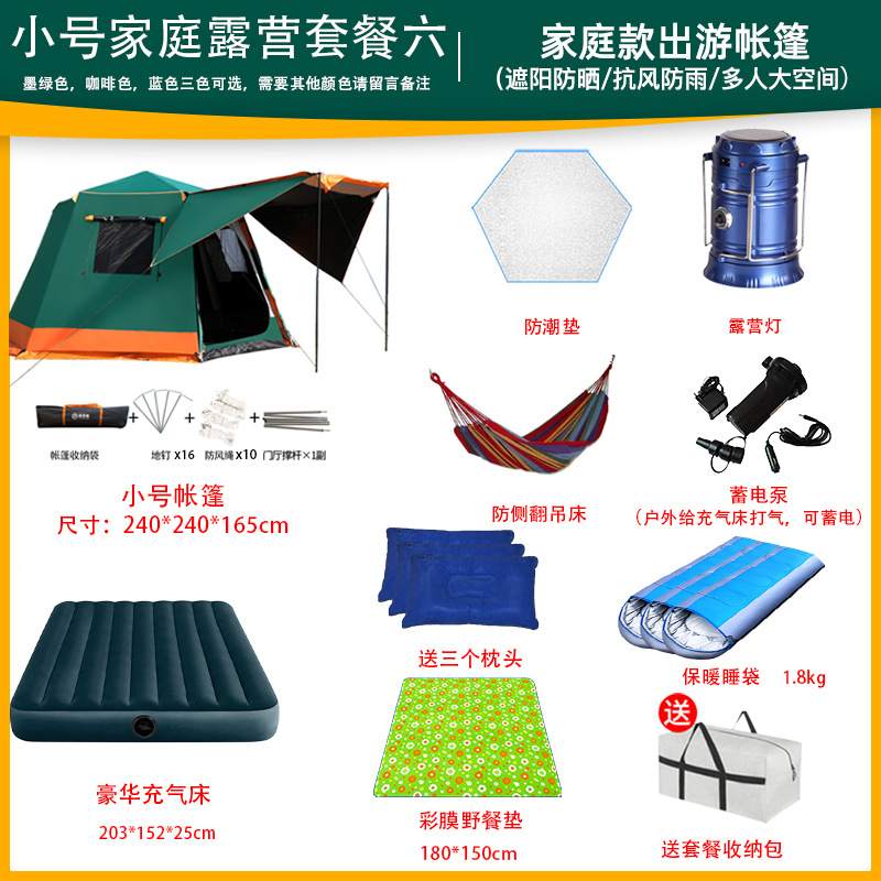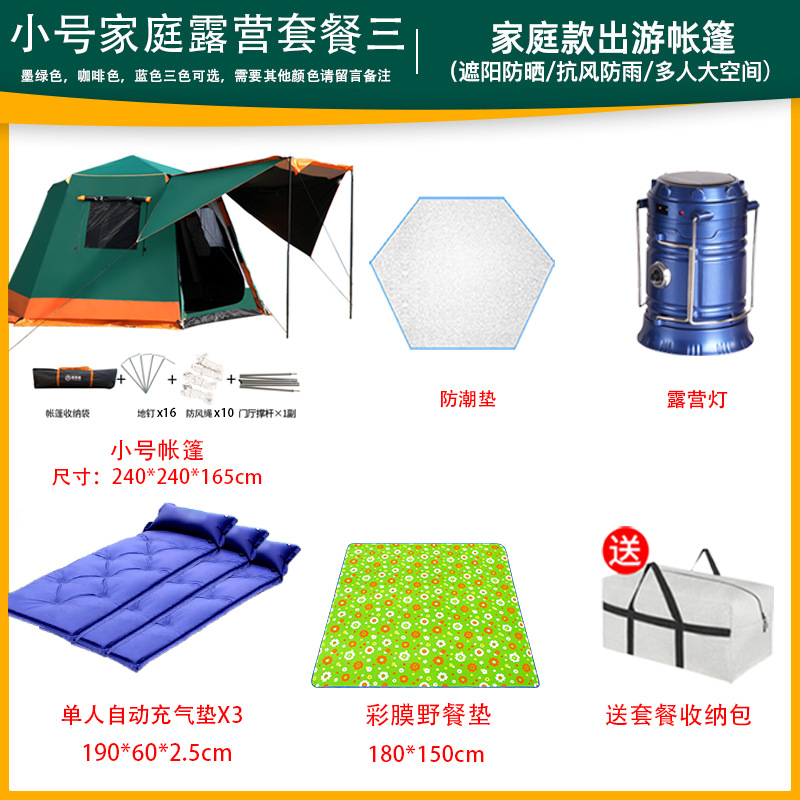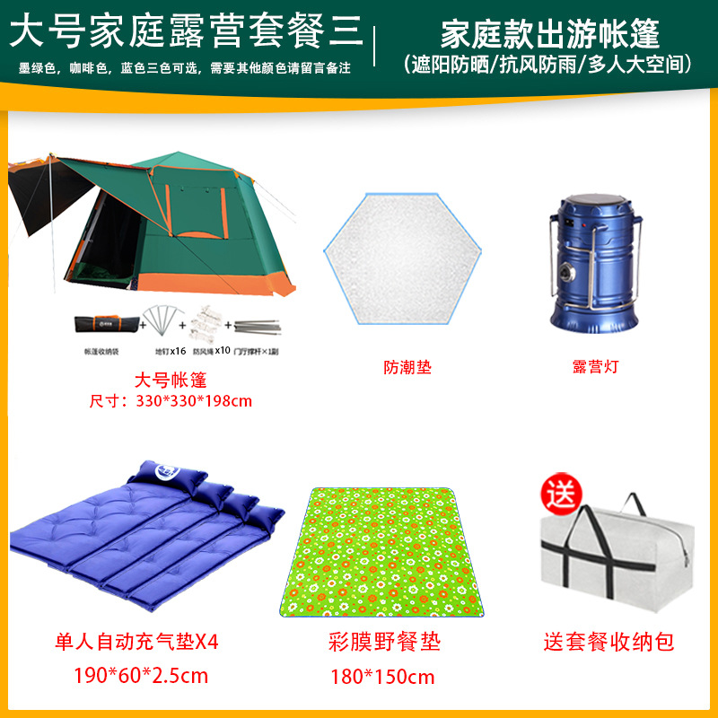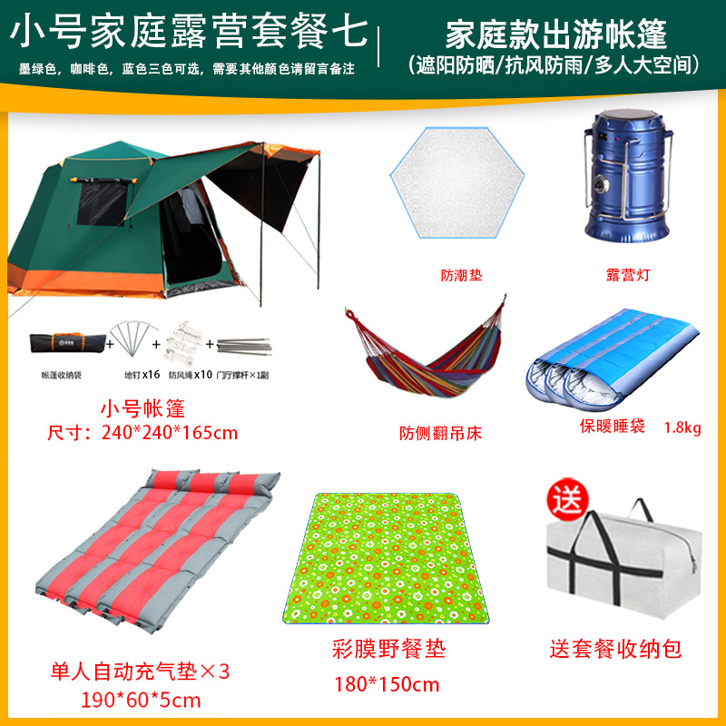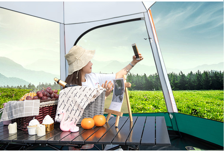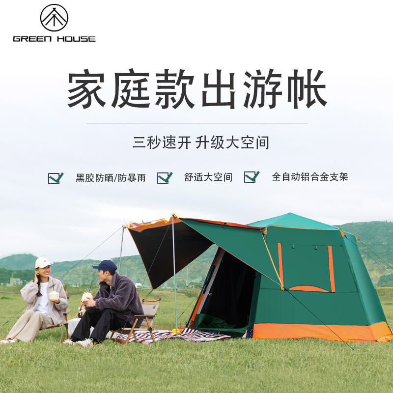 帐篷户外便携式折叠全自动六角铝杆速开黑胶野营加厚防雨露营室内