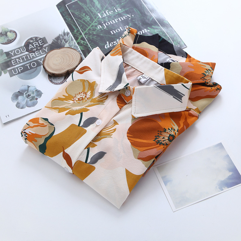 봄 새로운 우아한 디자인 감각 틈새 셔츠 탑 쉬폰 셔츠 인쇄 긴 소매 셔츠 여성스토어 가기
