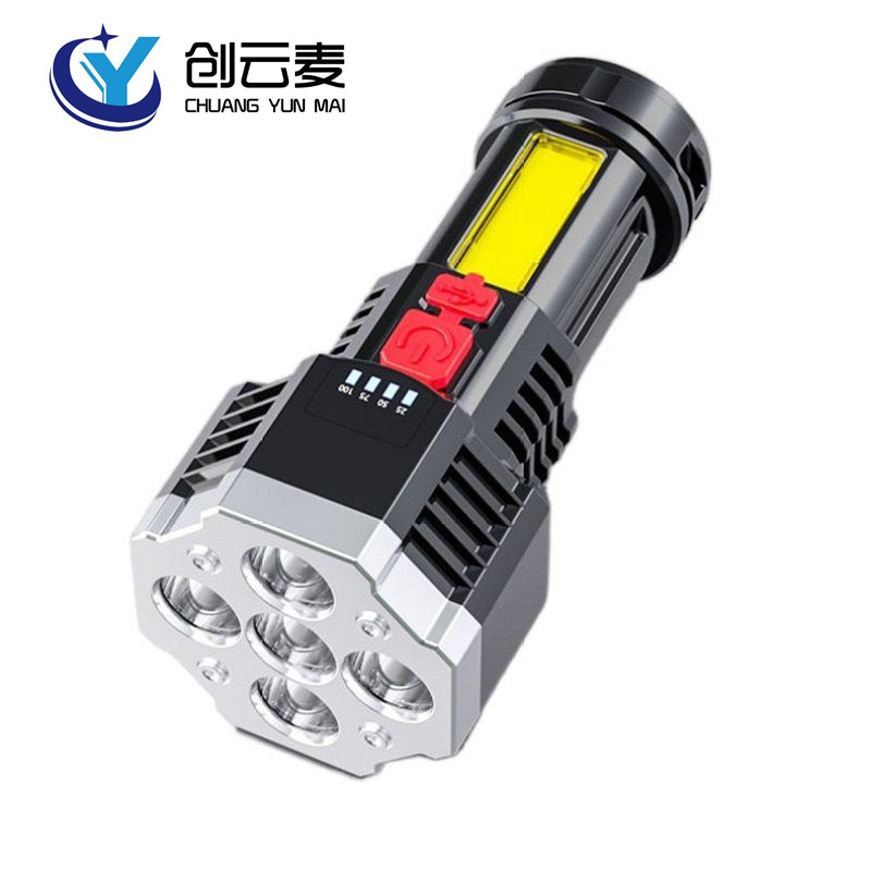 크로스 보더 5 등 손전등 COB 사이드 라이트 장거리 가정용 실외 조명 손전등 USB 충전