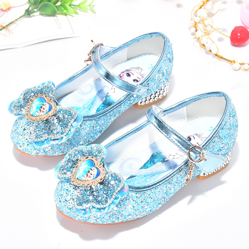 어린이 신발 여아 굽 높은 신발 어린 소녀 엘사 크리스탈 신발 2022 봄과 가을 댄스 피아노 어린이 공주 신발스토어 가기