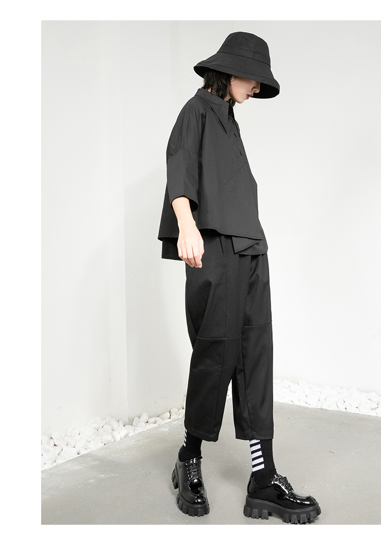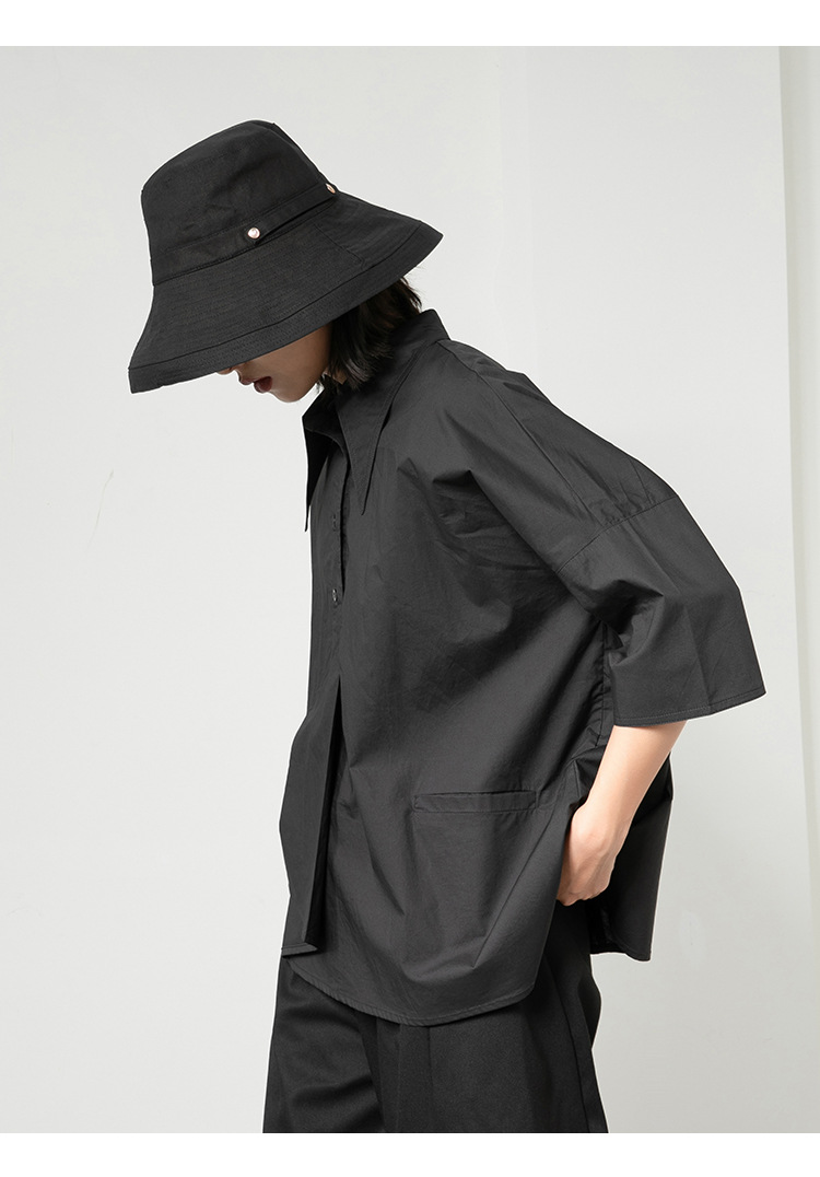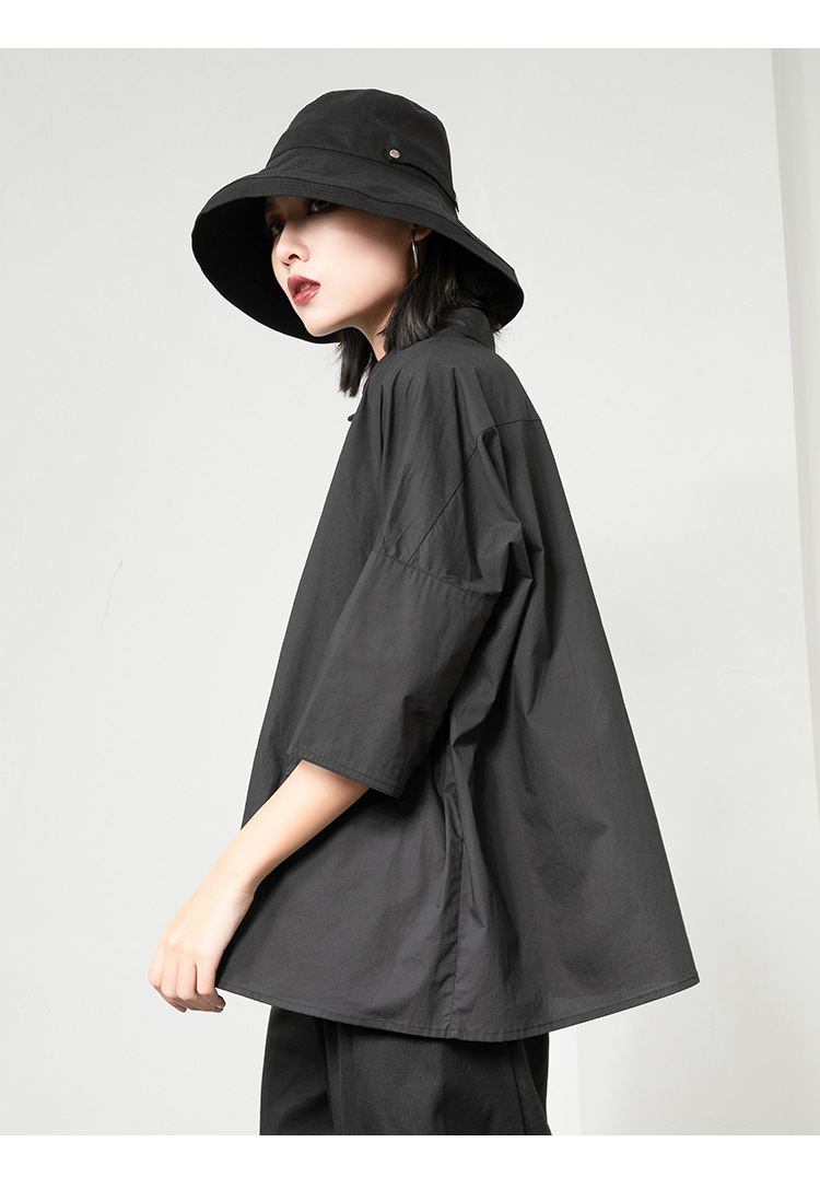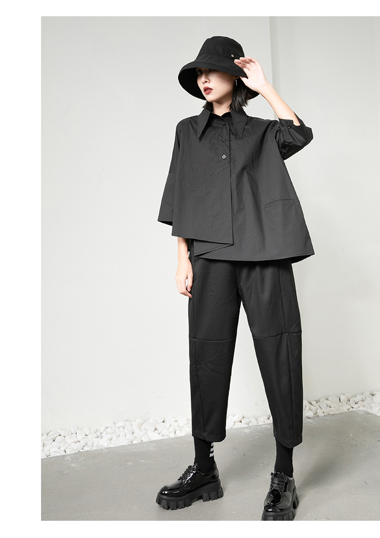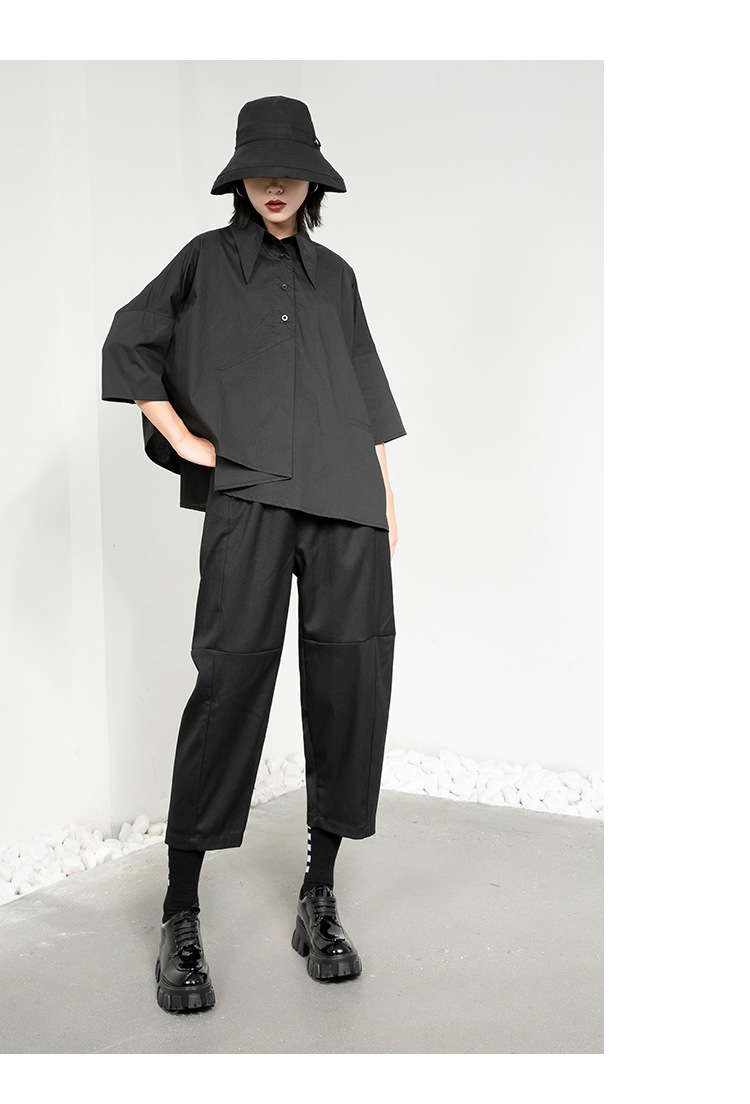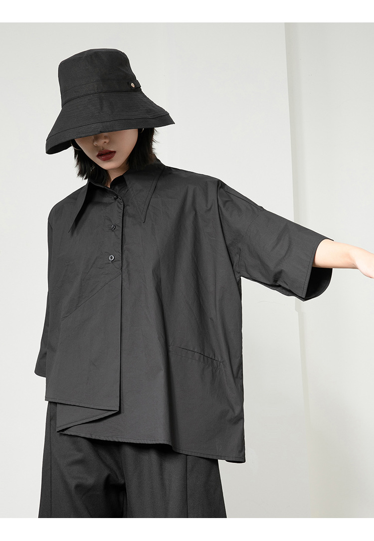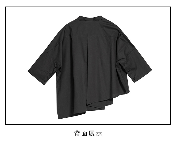 봄과 여름 심플한 여성 셔츠 홍콩 패션 디자이너의 불규칙한 7 점 슬리브 셔츠 느슨한 캐주얼 여성 패션스토어 가기