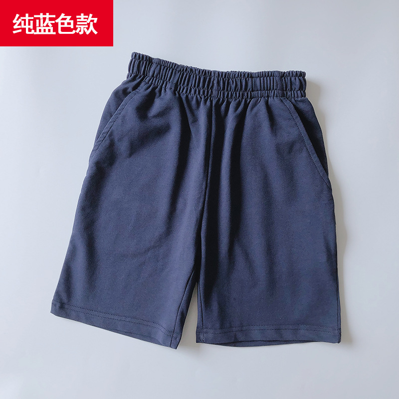 어린이 파란색 반바지 2024 여름 착용 소년 소녀 얇은 바지 중학생을위한 빨간색과 흰색 바지스토어 가기