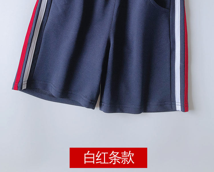 어린이 파란색 반바지 2024 여름 착용 소년 소녀 얇은 바지 중학생을위한 빨간색과 흰색 바지