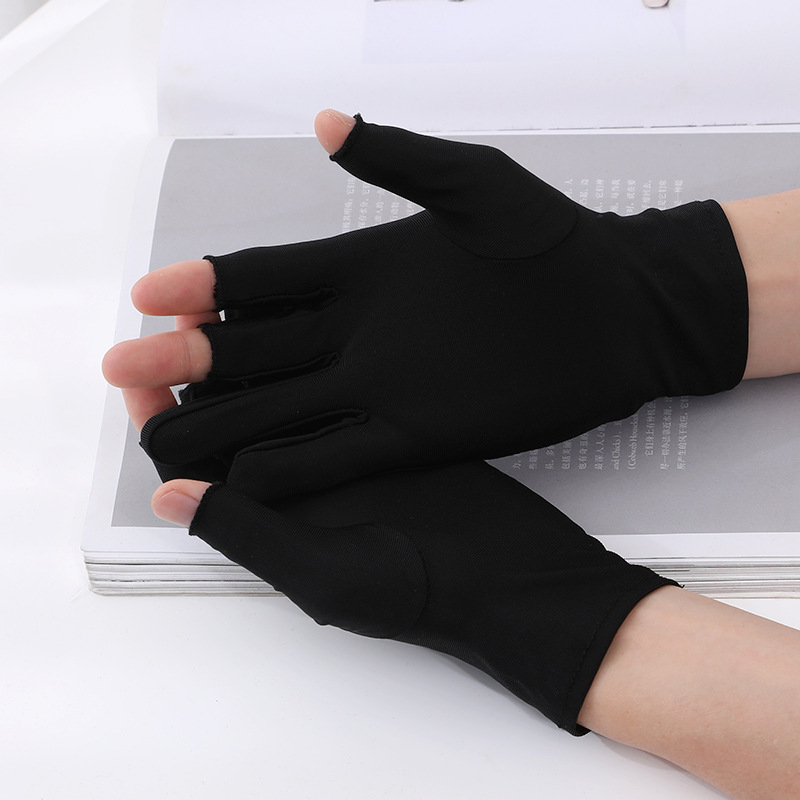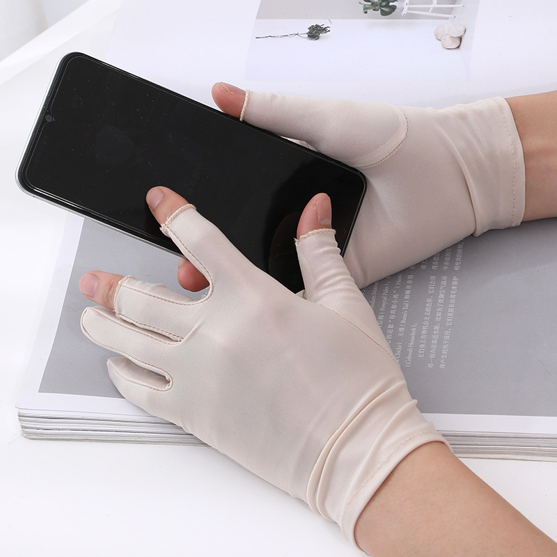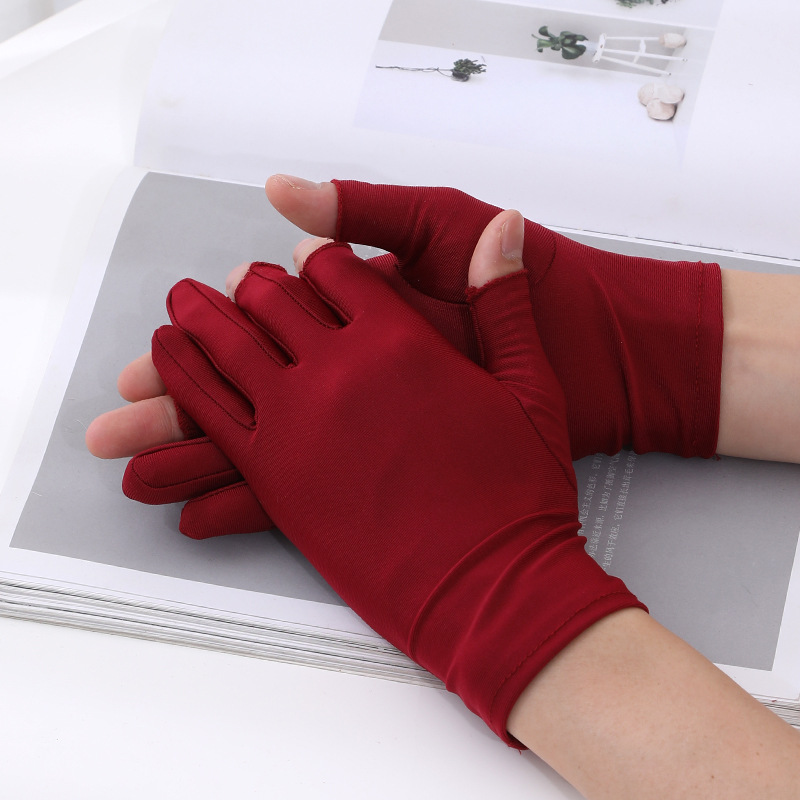 누출 세 손가락 탄성 자외선 차단제 장갑 경량 통기성 쓰기 차 따기 봄과 여름 가을 이슬 손가락 여성을위한 운전 장갑