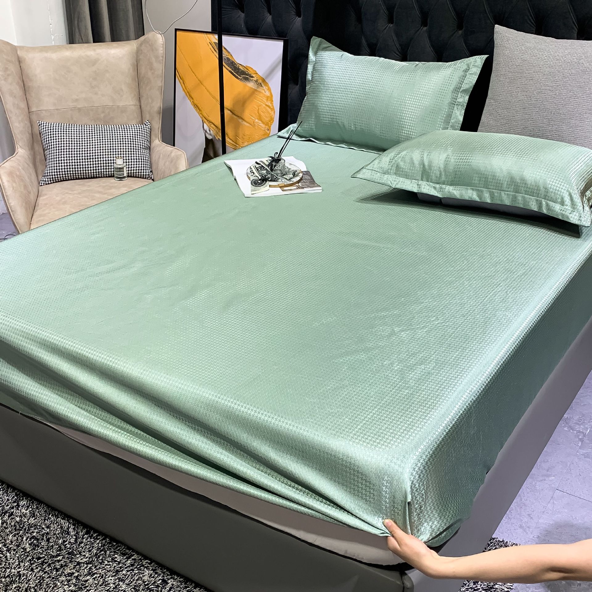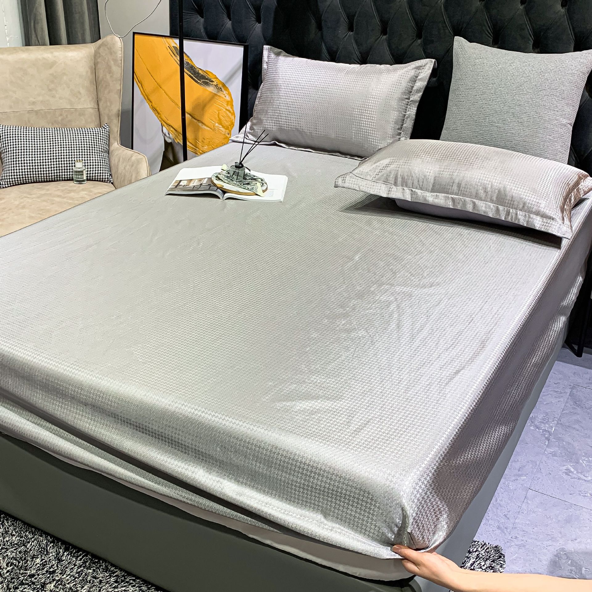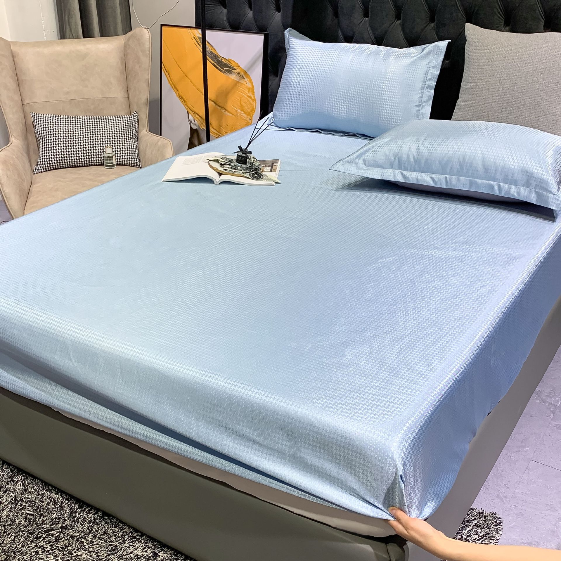 아이스 실크 매트 침대 시트 3종 세트 접이식 에어컨 매트 부드러운 매트 세탁기 사용 가능 시원한 느낌 기술
