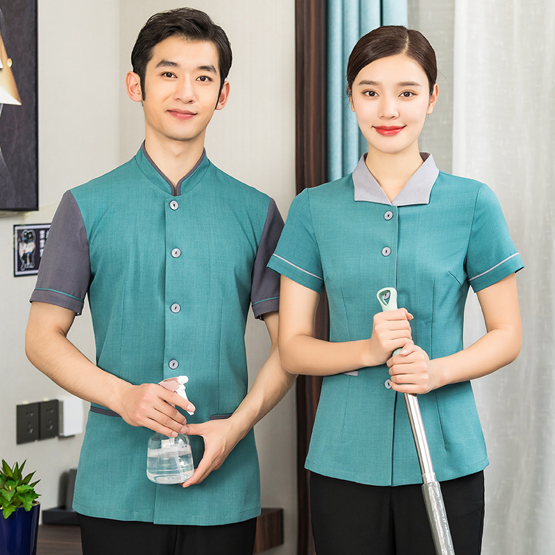 청소 작업복 남자와 여자의 반팔 세트 호텔 방 호텔 속성 청소 아줌마 청소 의류스토어 가기