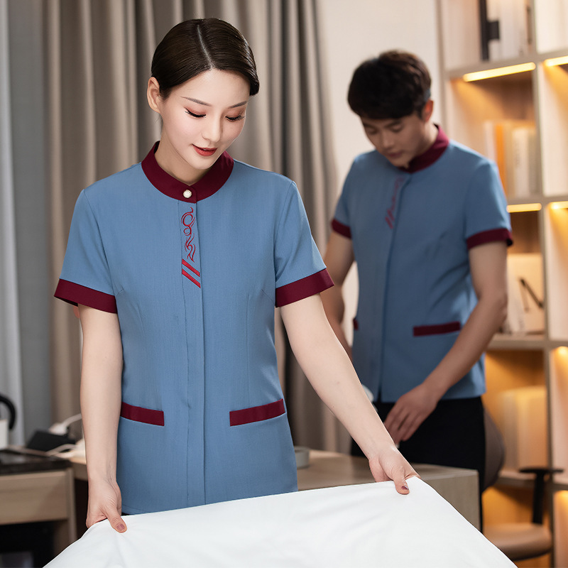 청소 작업복 남성 및 여성 반팔 통기성 내마모성 세트 주거용 건물 하우스 키핑 호텔 호텔 맞춤 툴링