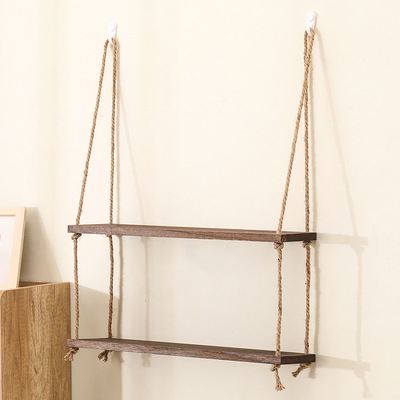펀치 프리 스토리지 랙 대마 로프 파티션 나무 책장 벽 장식 랙 라미네이트 거실 벽걸이 형 스토리지 랙스토어 가기