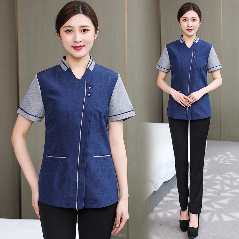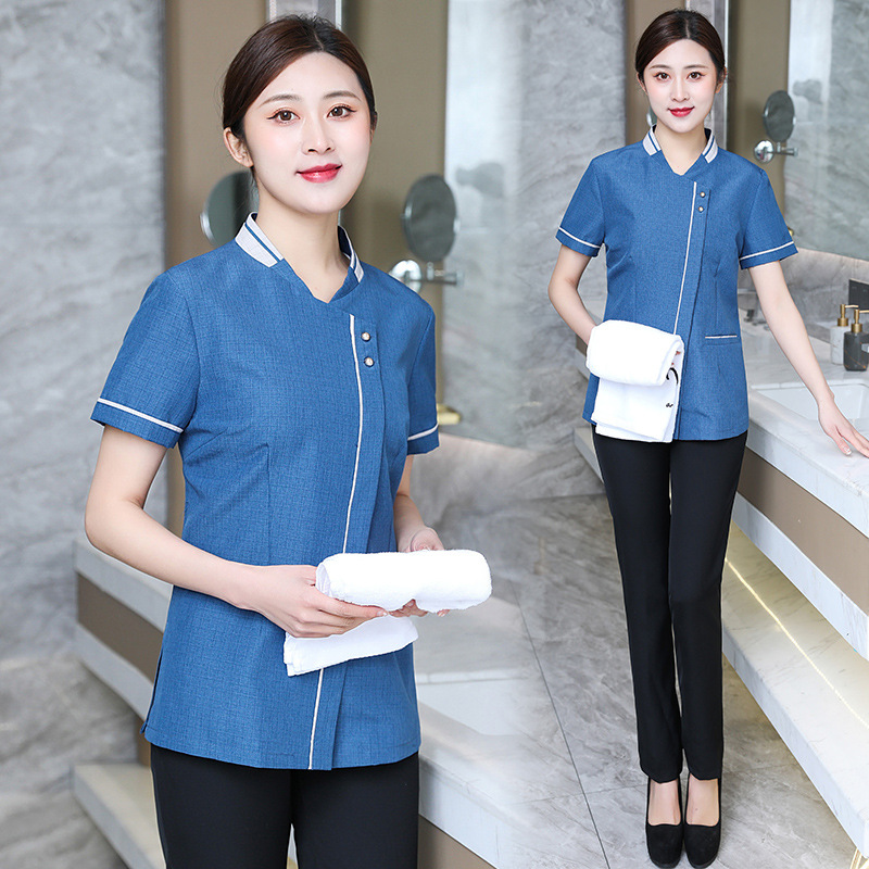 호텔 방 청소 옷 반소매 남자와 여자의 재산 병원 청소기 작업복 여름 청소기 아줌마에게 세트스토어 가기