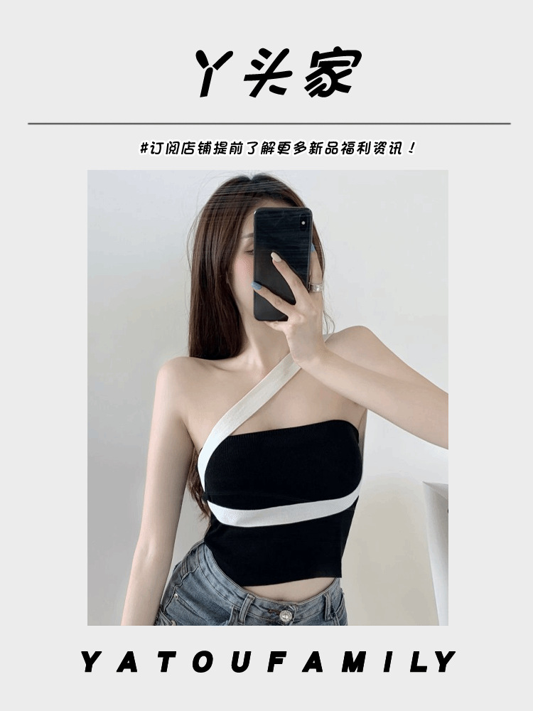 대비 색상 작은 캐미솔 여성의 봄 순수한 욕망 스타일 섹시한 어깨 목 탑 뜨거운 소녀 배꼽 짧은베이스 셔츠스토어 가기