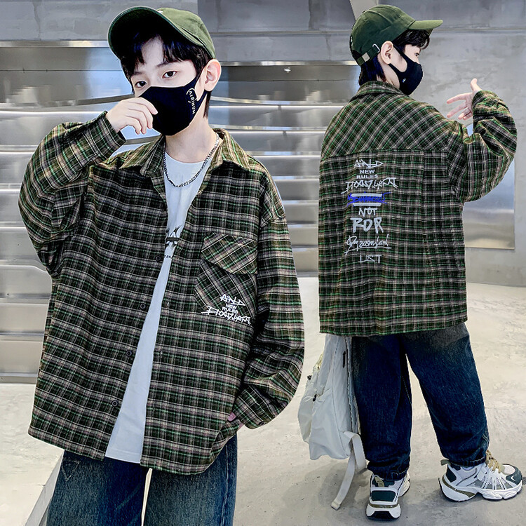 소년의 긴 소매 셔츠 봄과 가을 2025 새로운 서양 스타일 크고 큰 어린이 최고 소년의 가을 캐주얼 코트 셔츠스토어 가기