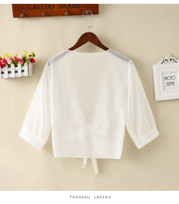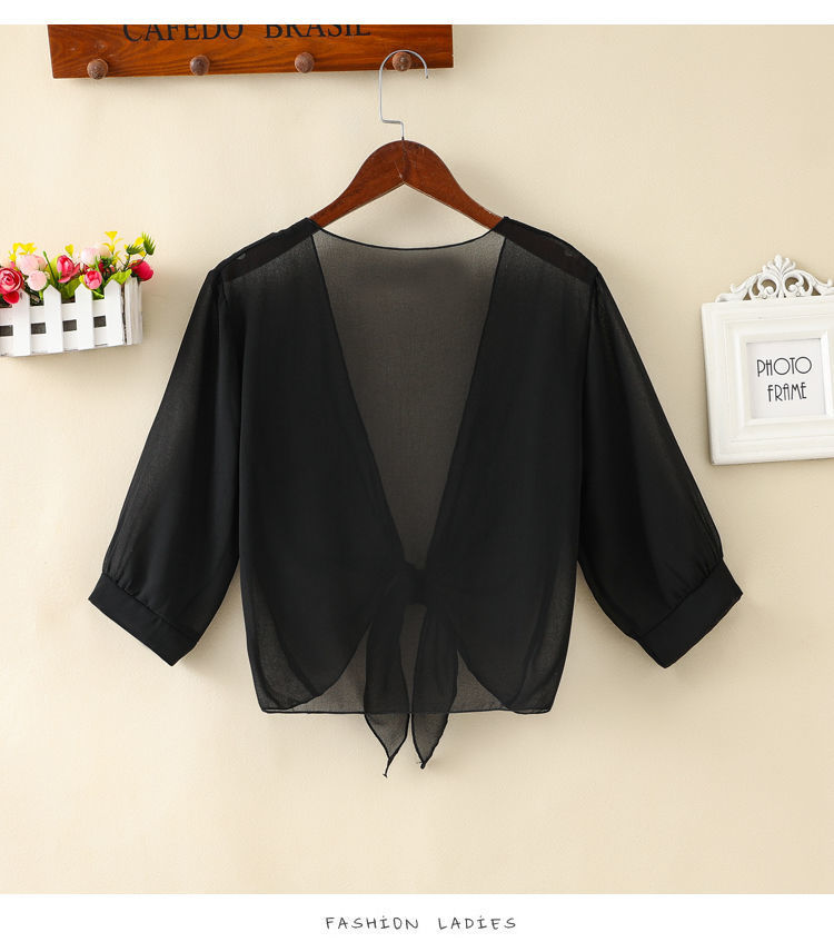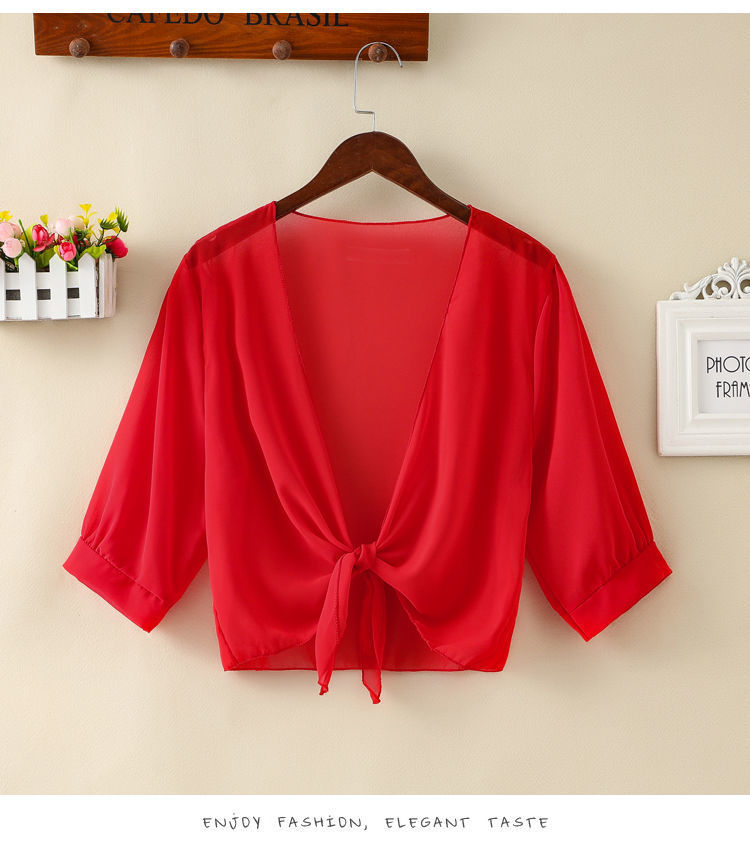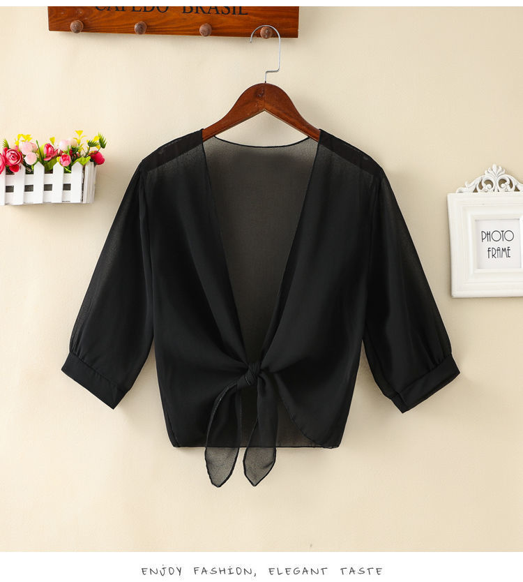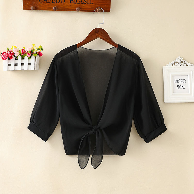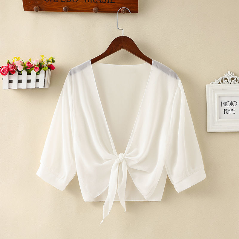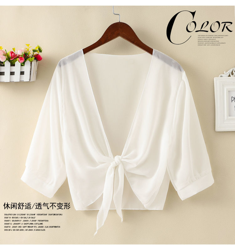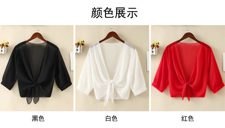 태양 보호 의류 여성용 여름 아이스 실크 얇은 쉬폰 작은 목도리 슬링 스커트 쇼트 코트 외부 레이스 업 에어컨 셔츠