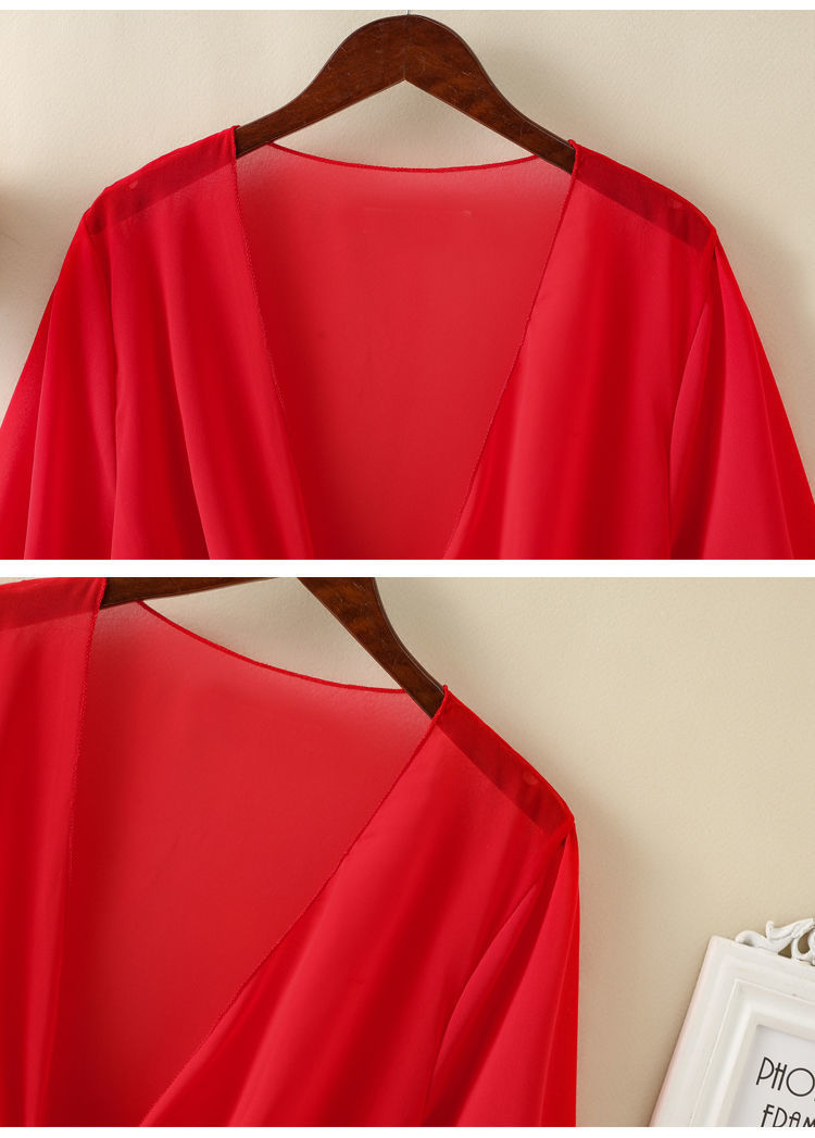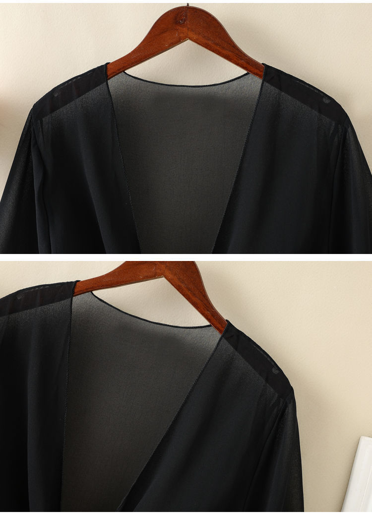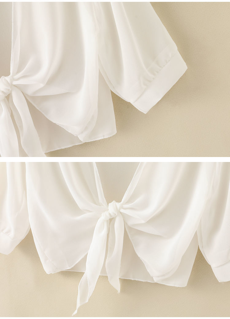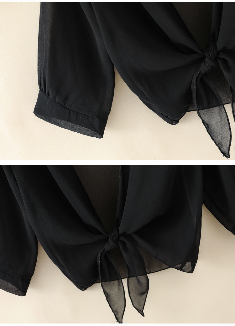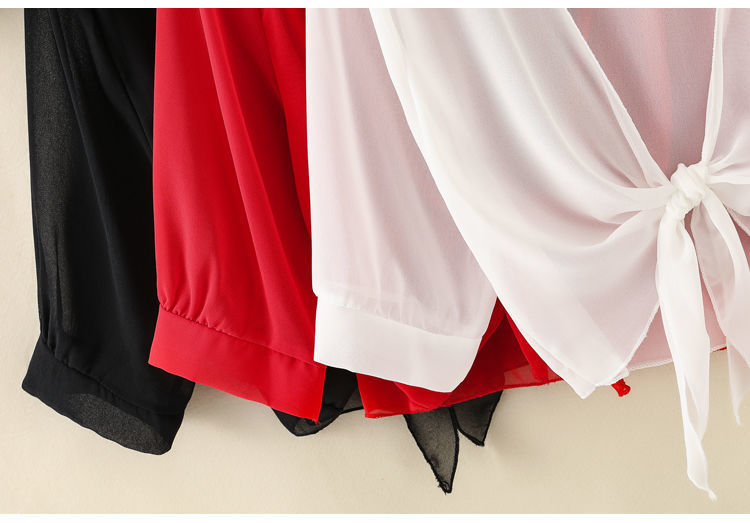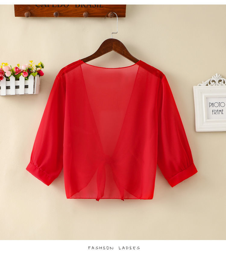 태양 보호 의류 여성용 여름 아이스 실크 얇은 쉬폰 작은 목도리 슬링 스커트 쇼트 코트 외부 레이스 업 에어컨 셔츠