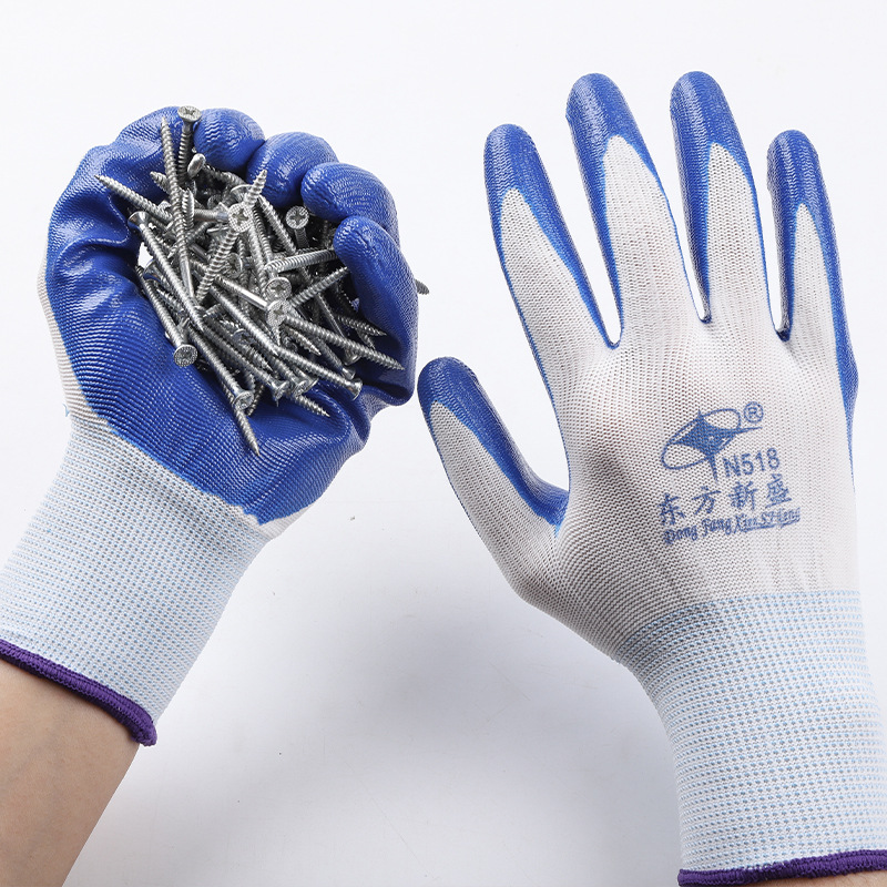 공장 공급 오리엔탈 Xinsheng 노동 보호 장갑 N518 니트릴 담그는 내마모성 내유성 미끄럼 방지 보호 장갑스토어 가기