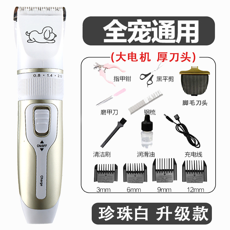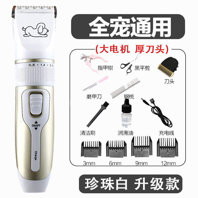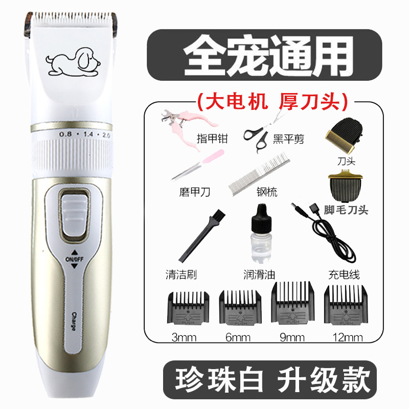 套餐3:主机,充电线,定位梳(4个),油瓶,小毛刷,说明书,备用刀头,指甲挫,指甲钳,剪刀,排梳