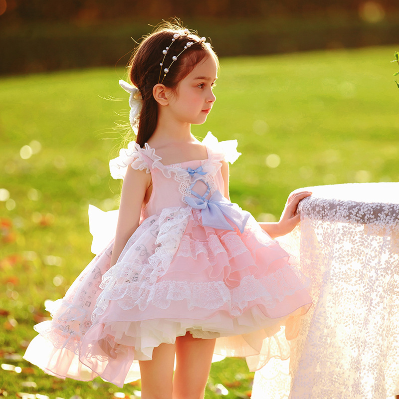 2024 년 여름 새 소녀 민소매 조끼 시폰 원피스 소녀 로리타 로리타 공주 원피스 투베테일 원피스스토어 가기