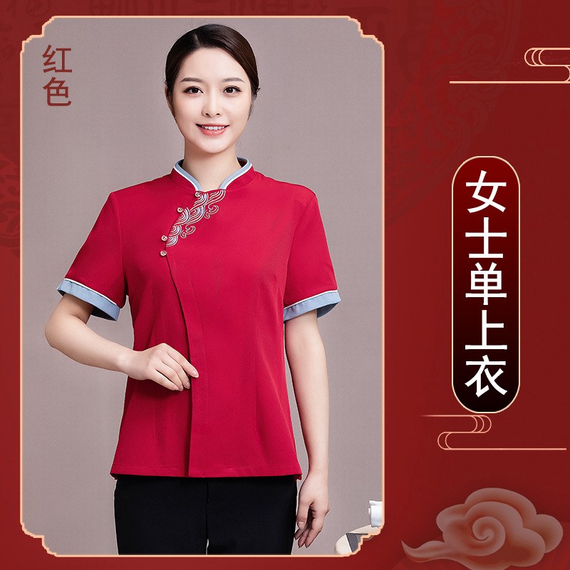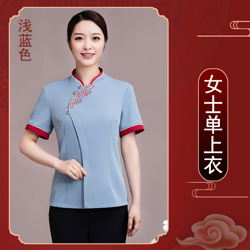중국 호텔 작업복 여성 여름 냄비 레스토랑 취사 찻집 참석자 반팔 레스토랑 프런트 데스크 직원 옷스토어 가기