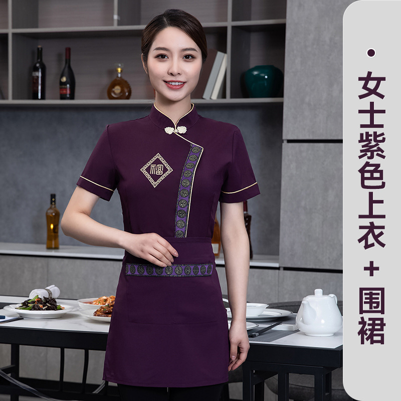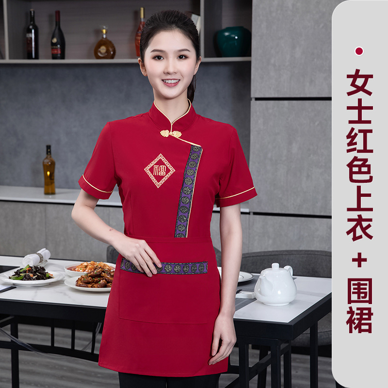 레스토랑 웨이터 작업복 여성 여름 중국 호텔 취사 냄비 레스토랑 레스토랑 찻집 반소매 의류 세트스토어 가기