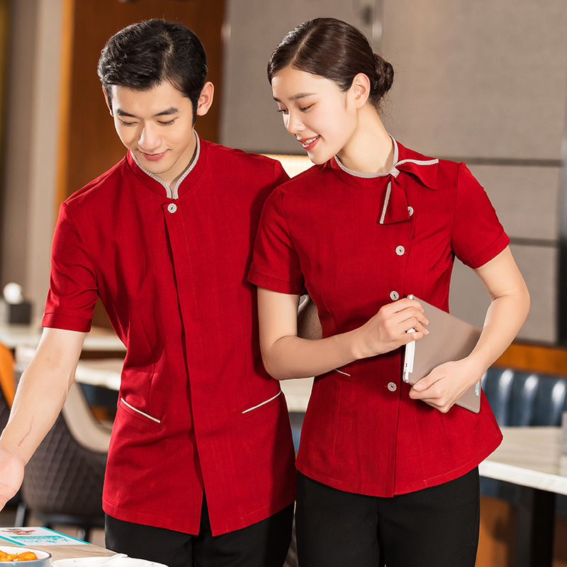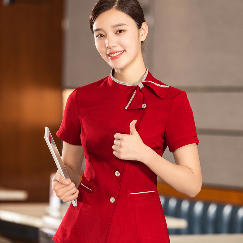 호텔 작업복 여성의 여름 옷 중국 레스토랑 의류 취사 찻집 호텔 냄비 레스토랑 웨이터 작업복 반소매