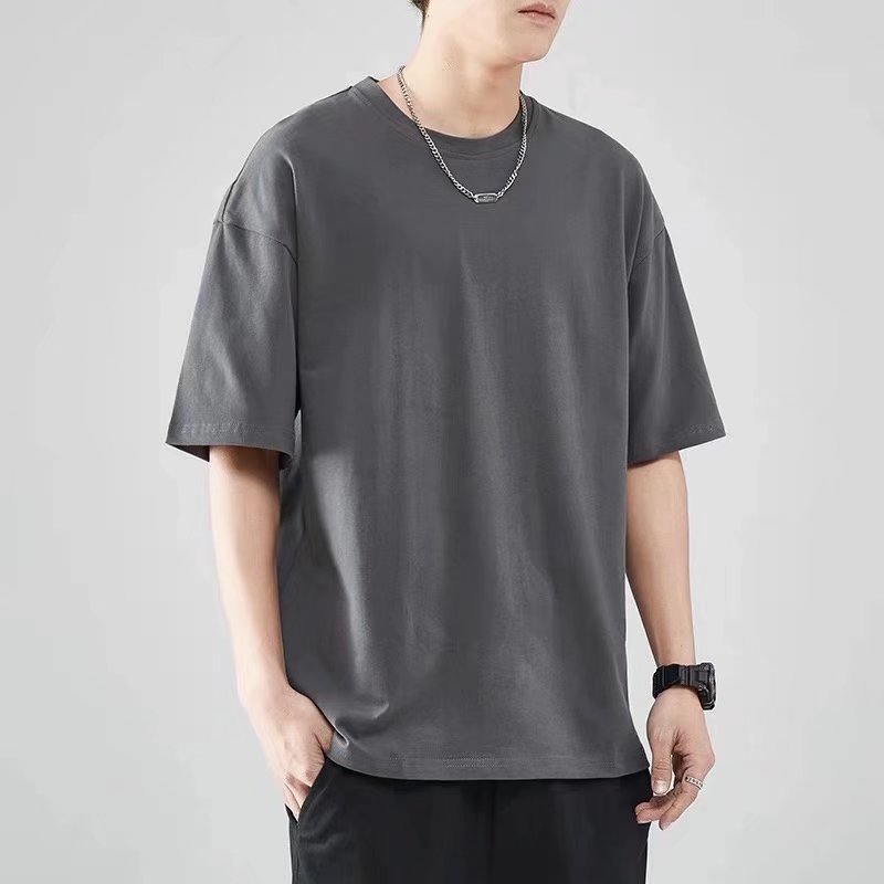 220g 무거운 면 반팔 티셔츠 남성용 느슨한 크루넥 베이스 셔츠 스포츠 반팔 플러스 사이즈 단색 어깨스토어 가기
