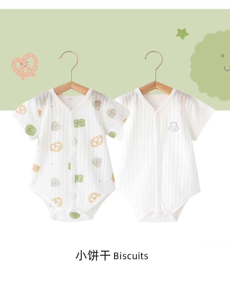 신생아의 순면 Hayi 얇은 통기성 여름 옷 삼각형 가방 뚱뚱한 옷 뼈없는 재봉 점프 슈트 반팔스토어 가기