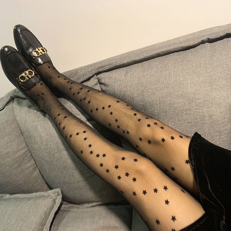 새로운 작은 섹시한 달콤한 무릎 큰 사랑 인쇄 울트라 얇은 블랙 실크 스타킹 모든 컷 안티 후크 실크 팬티 스타킹스토어 가기