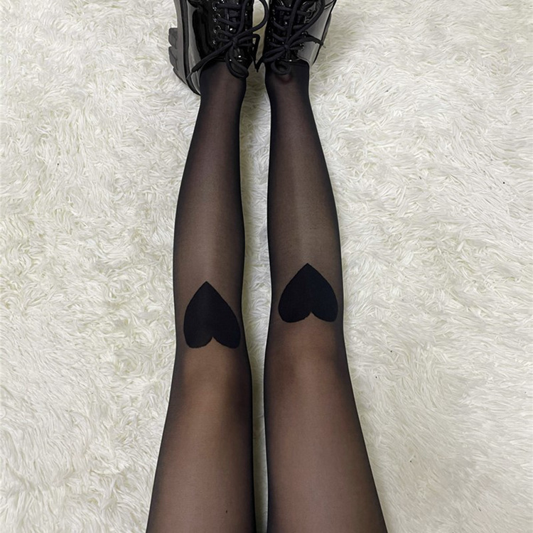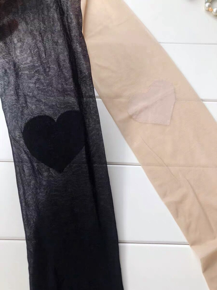 새로운 작은 섹시한 달콤한 무릎 큰 사랑 인쇄 울트라 얇은 블랙 실크 스타킹 모든 컷 안티 후크 실크 팬티 스타킹