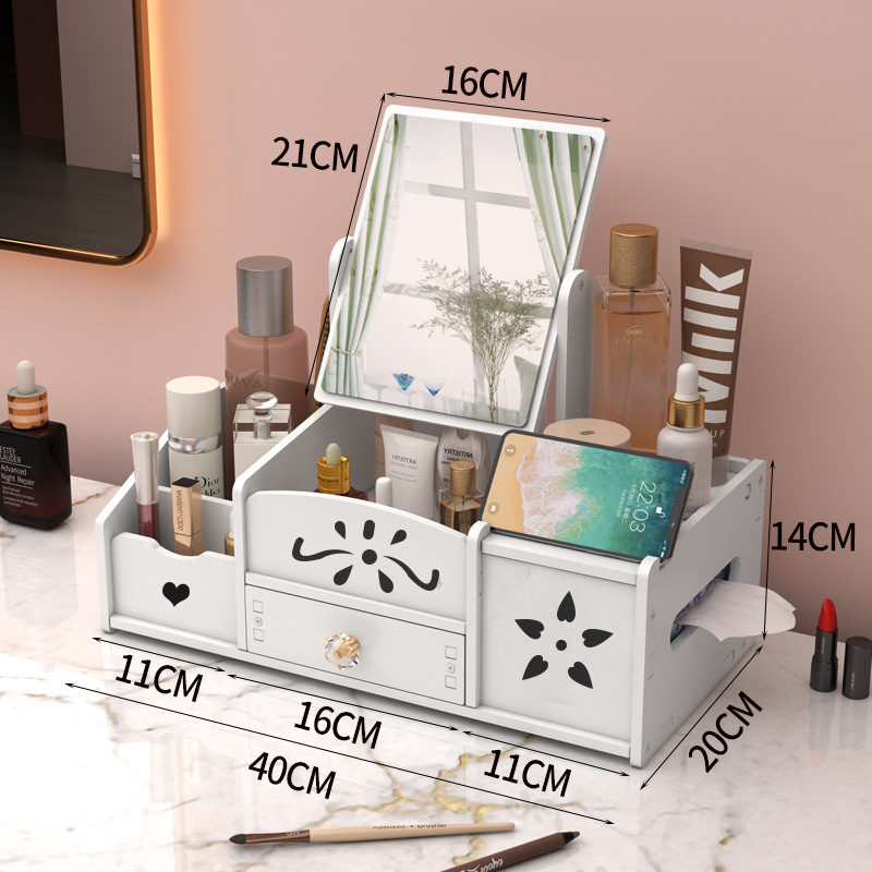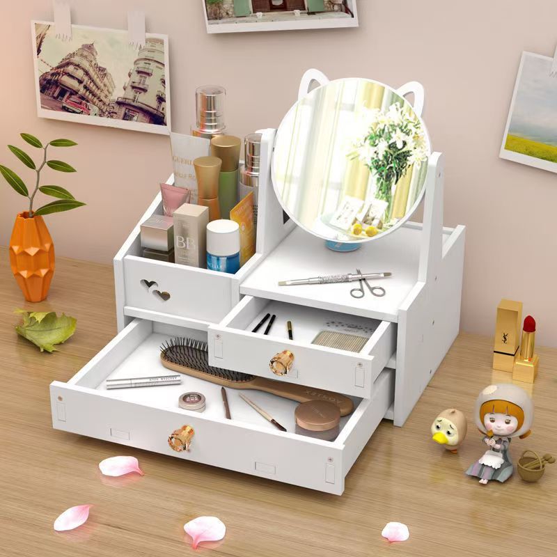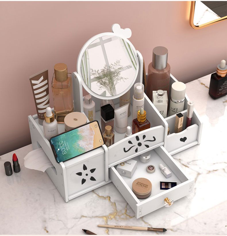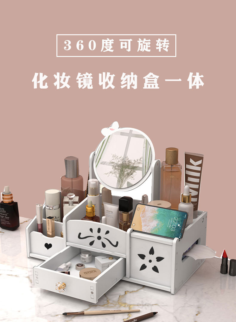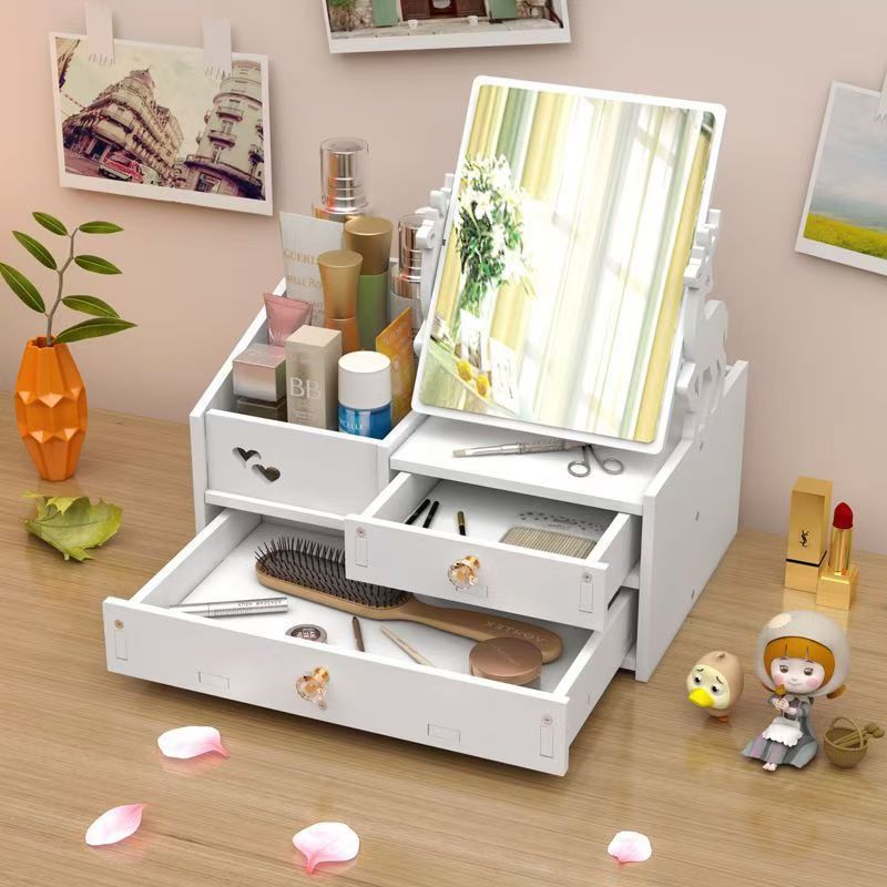화장품 수납함 고급스러운 대용량 방진 데스크탑 서랍 수납 화장 거울 스킨케어 제품 정리함