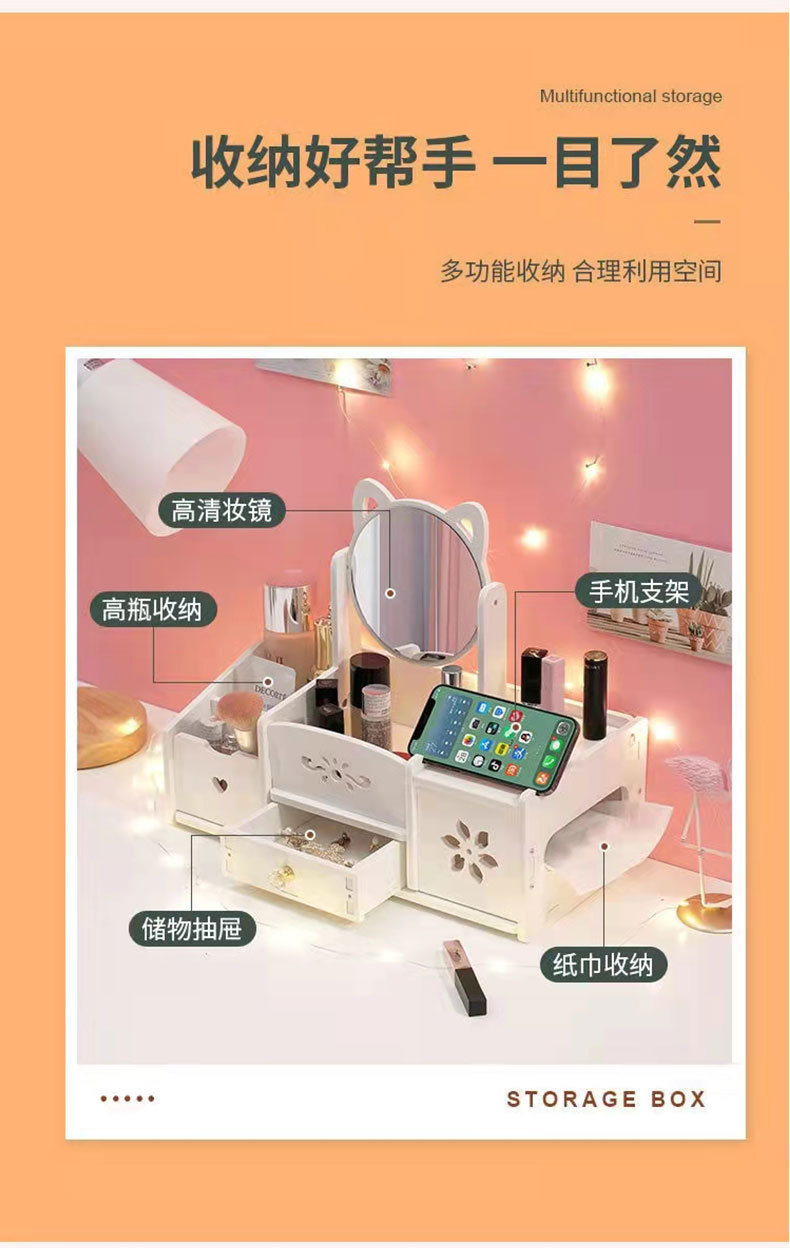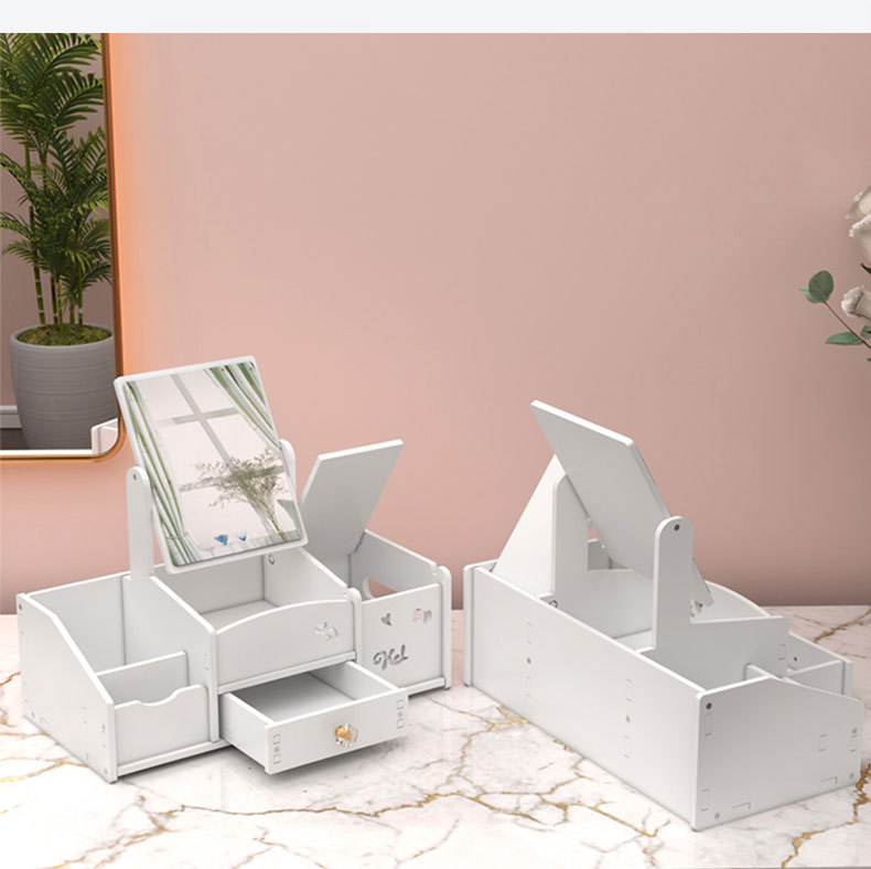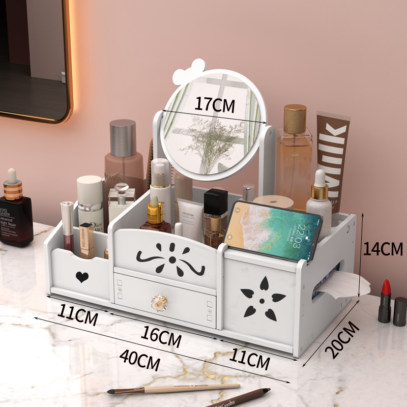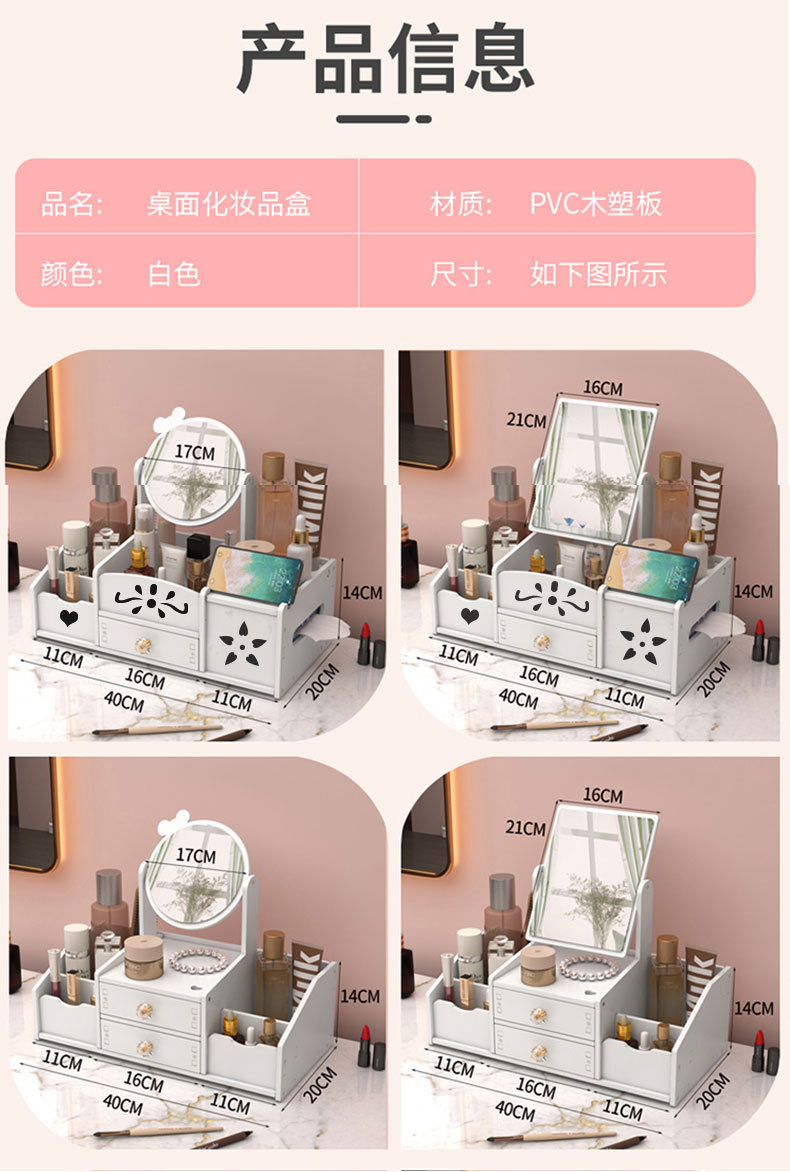 화장품 수납함 고급스러운 대용량 방진 데스크탑 서랍 수납 화장 거울 스킨케어 제품 정리함