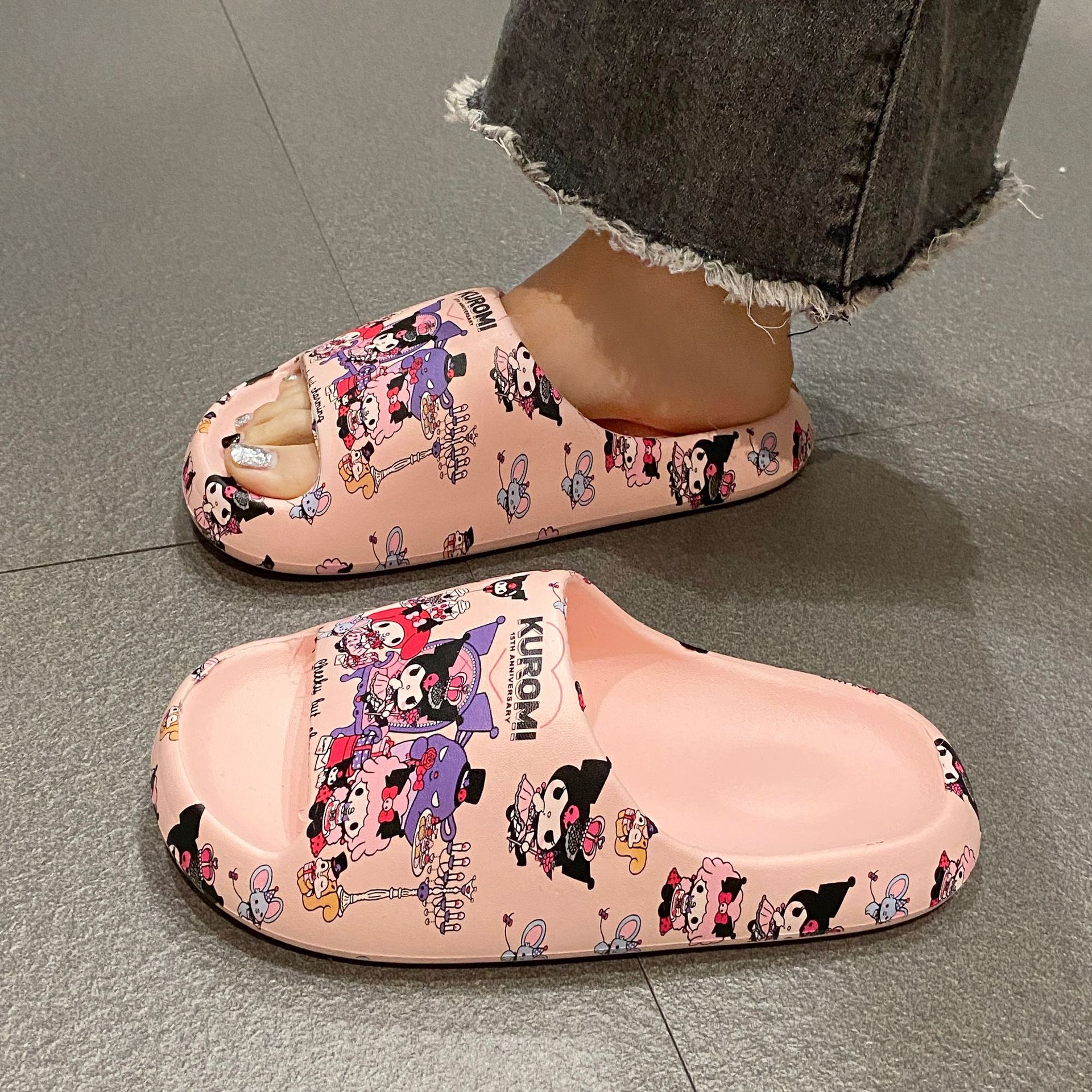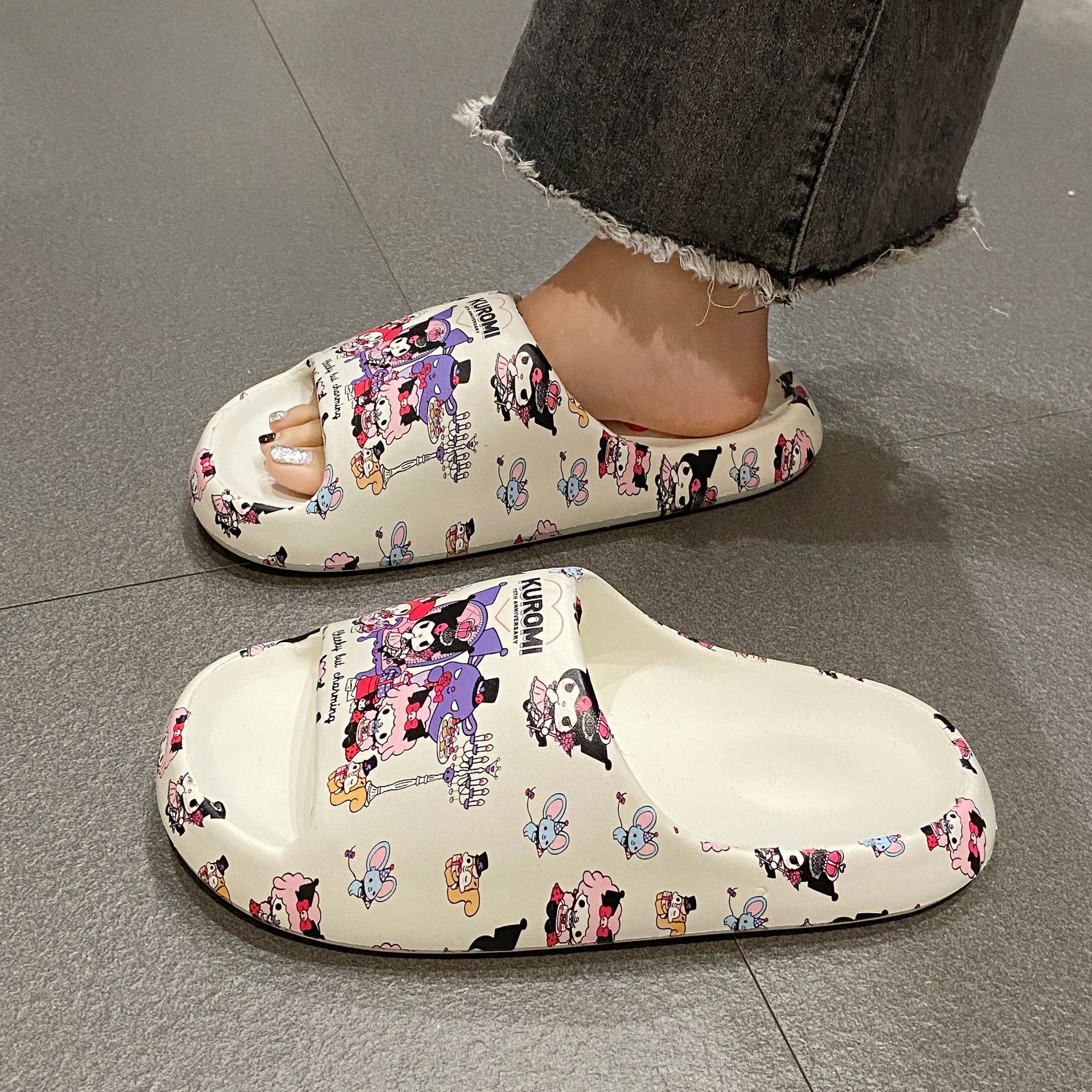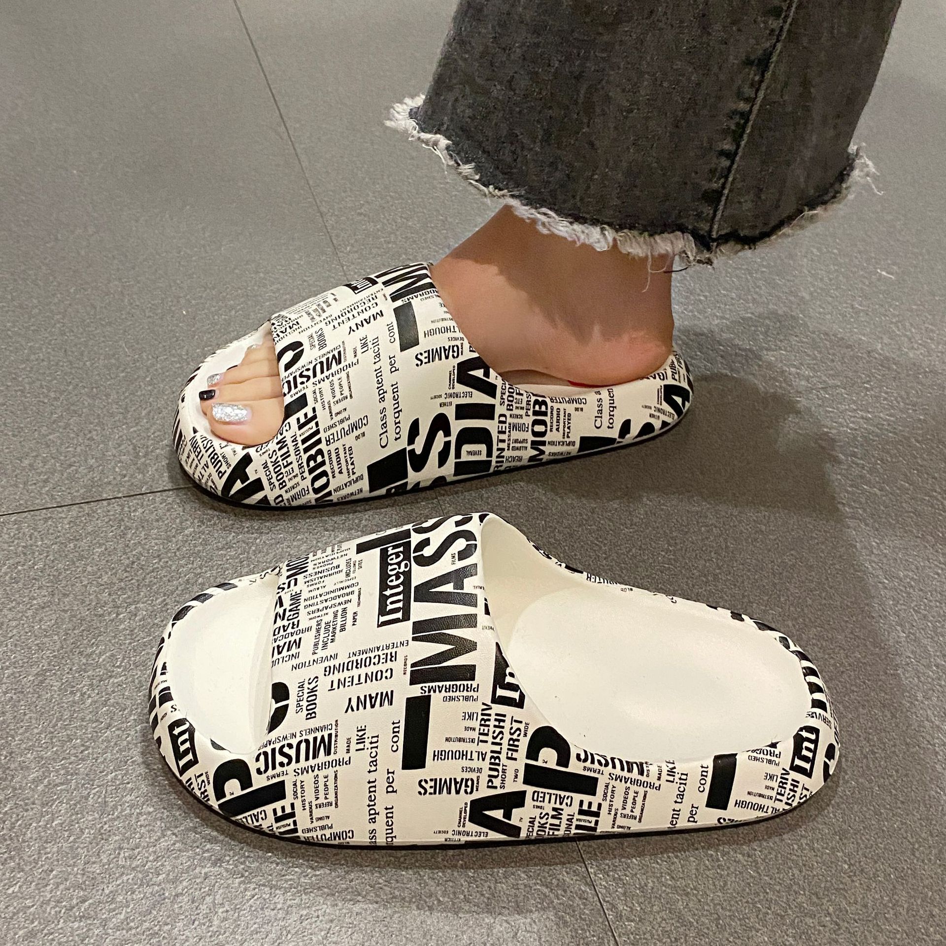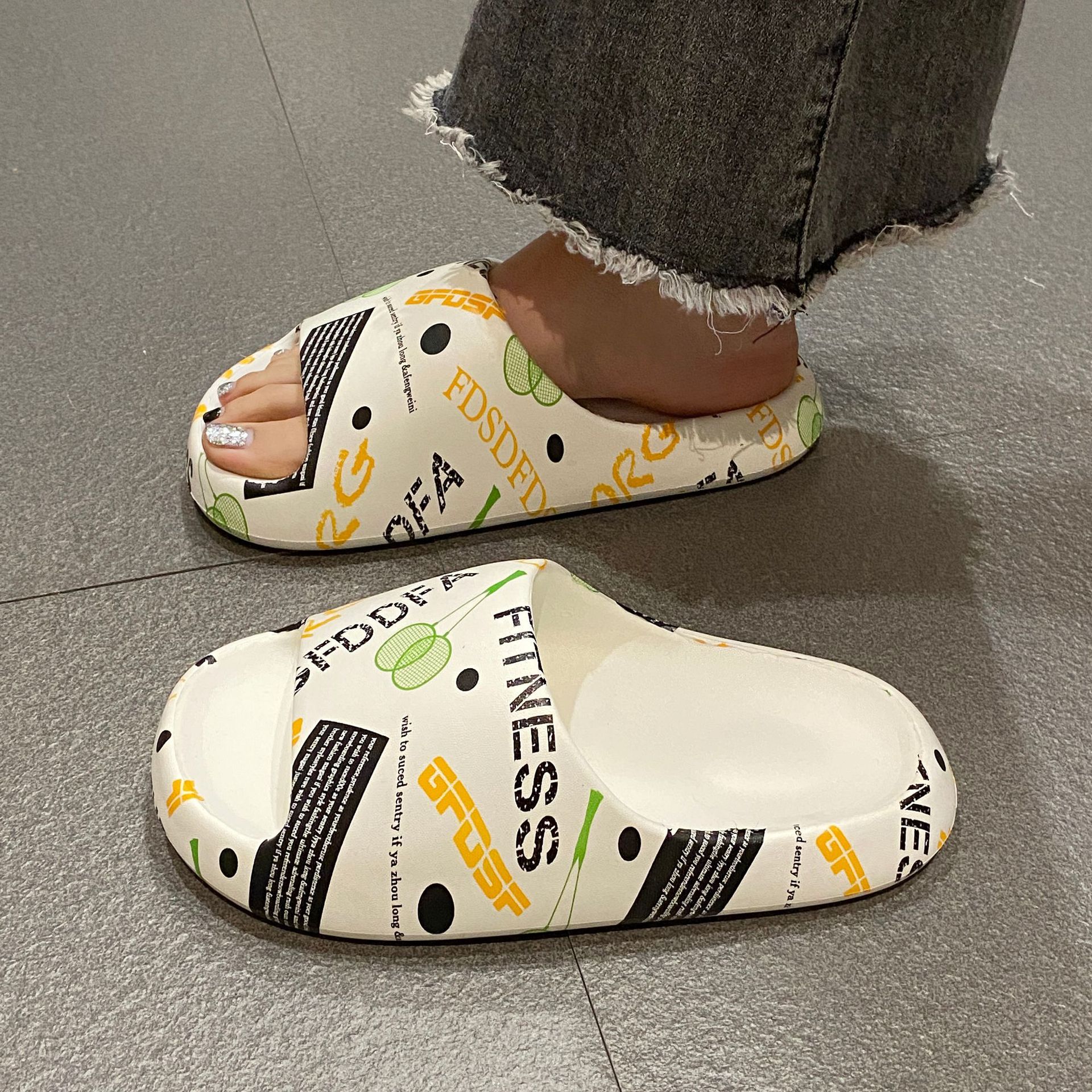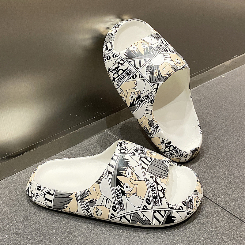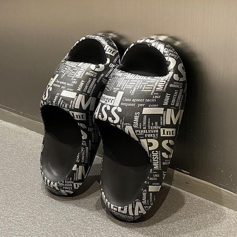 Stomp 느낌 전국 패션 인쇄 슬리퍼 남성과 여성을위한 여름 외부 착용 두꺼운 밑창 샌들 홈 미끄럼 방지 실내 남성용 슬리퍼