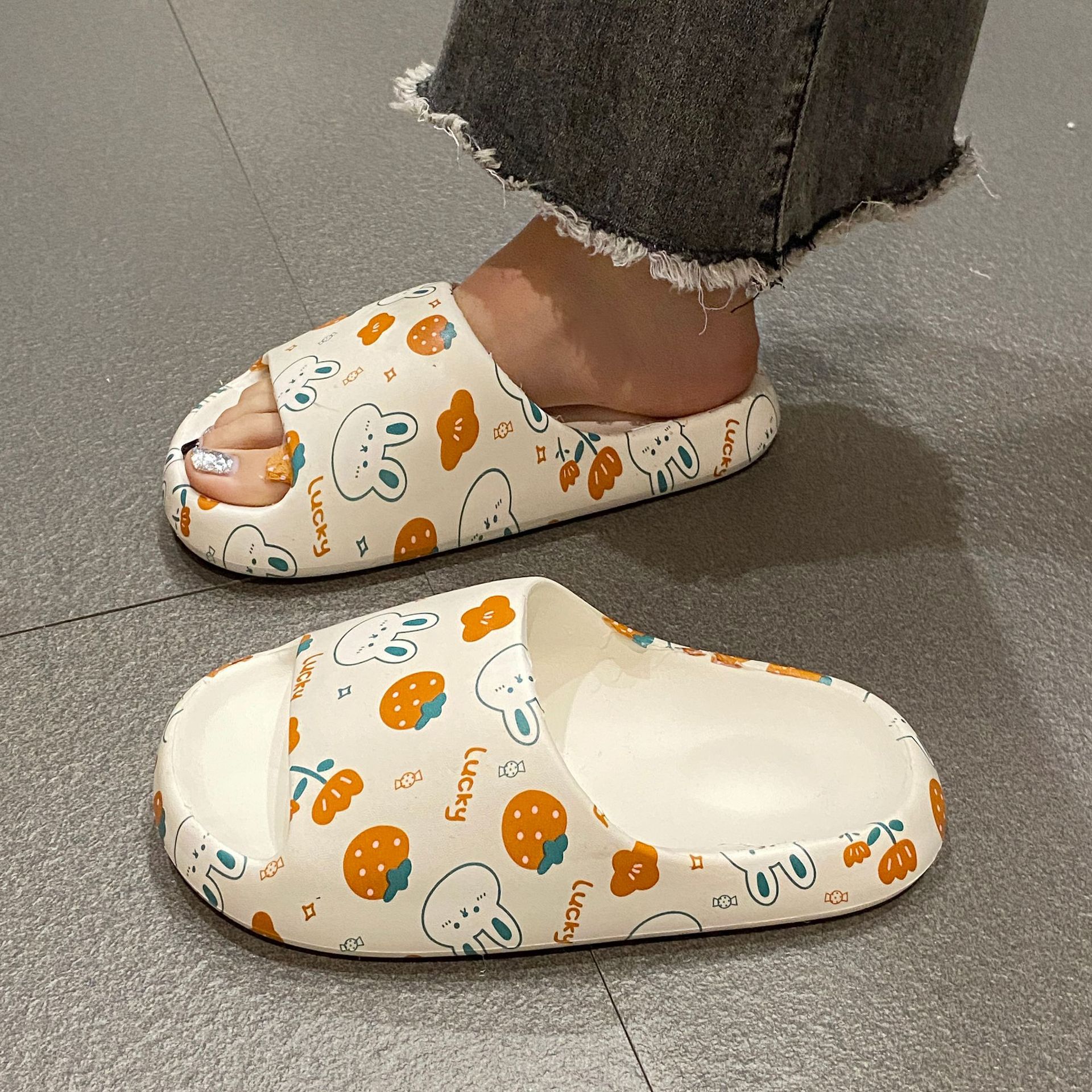 EVA拖鞋带面侧边有修边,如果稍有不平整可以自行修剪,不作为退换货理由,介意者慎拍。