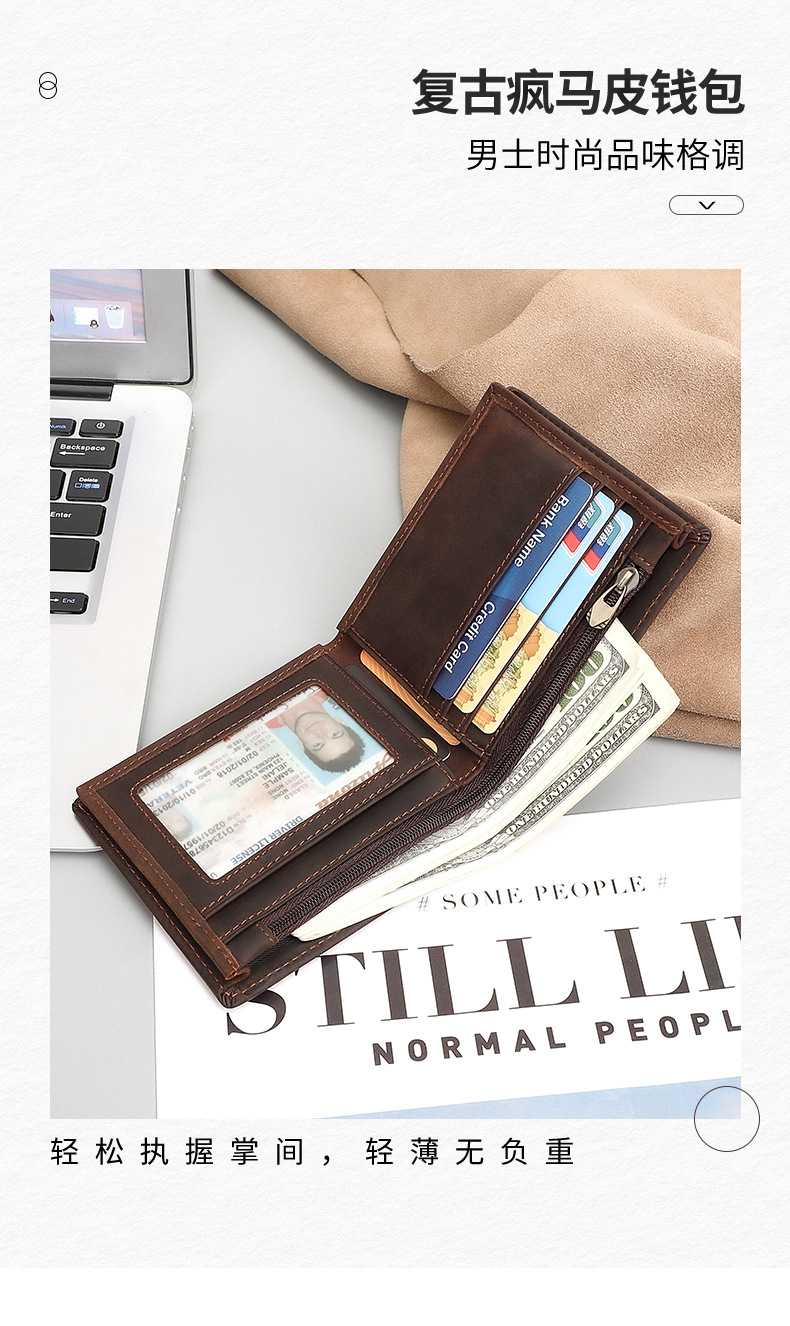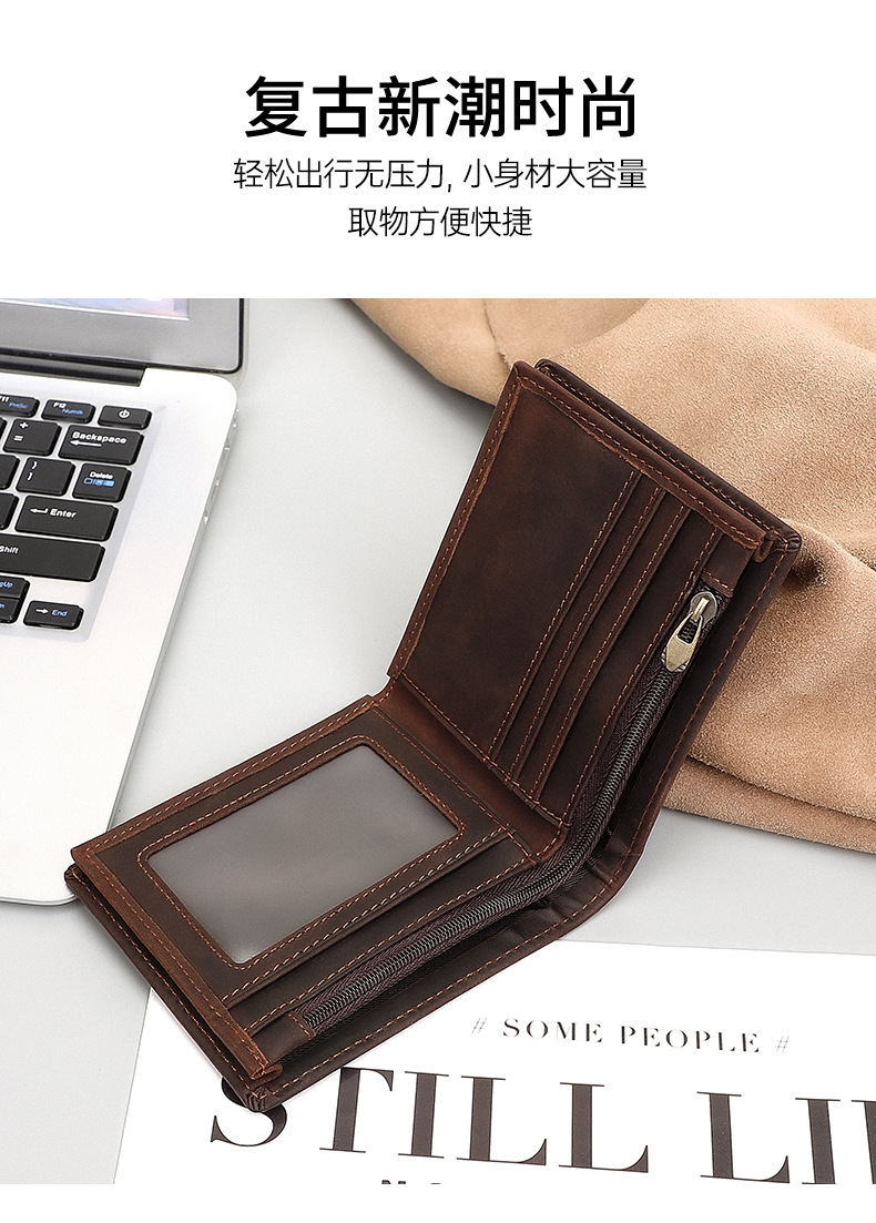 새로운 유럽과 미국 복고풍 남자의 가죽 지갑 아마존 뜨거운 공장 도매 짧은 멀티 카드 홀더 지갑스토어 가기