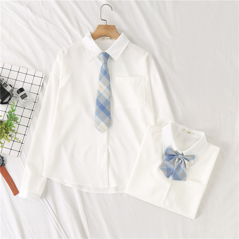 2022 여름 신작 JK 유니폼 셔츠 여성용 반팔 긴팔 흰색 셔츠 학생 얇은 퓨어 화이트 반팔