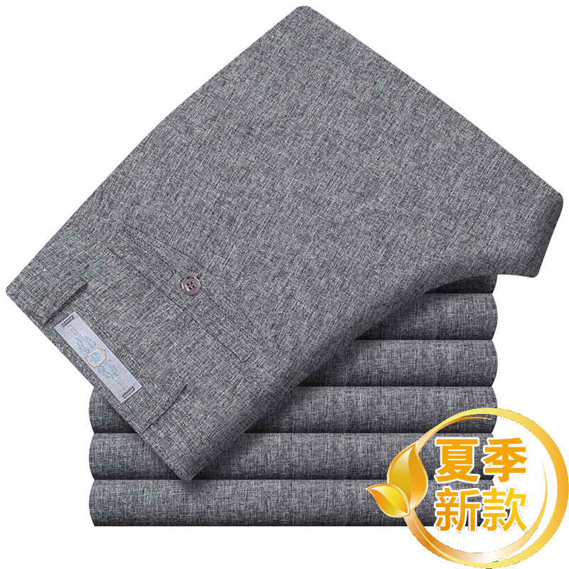 아이스 실크 린넨 캐주얼 바지 남성 바지 여름 얇은 중년 하이 웨이스트 스트레이트 느슨한 비즈니스 아빠 바지스토어 가기