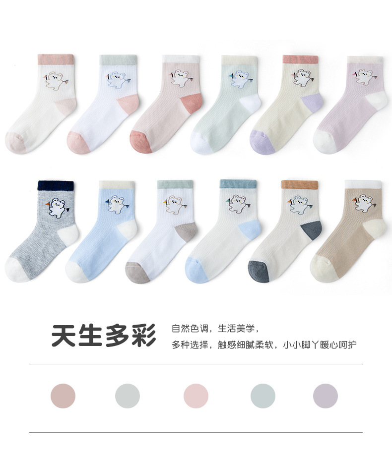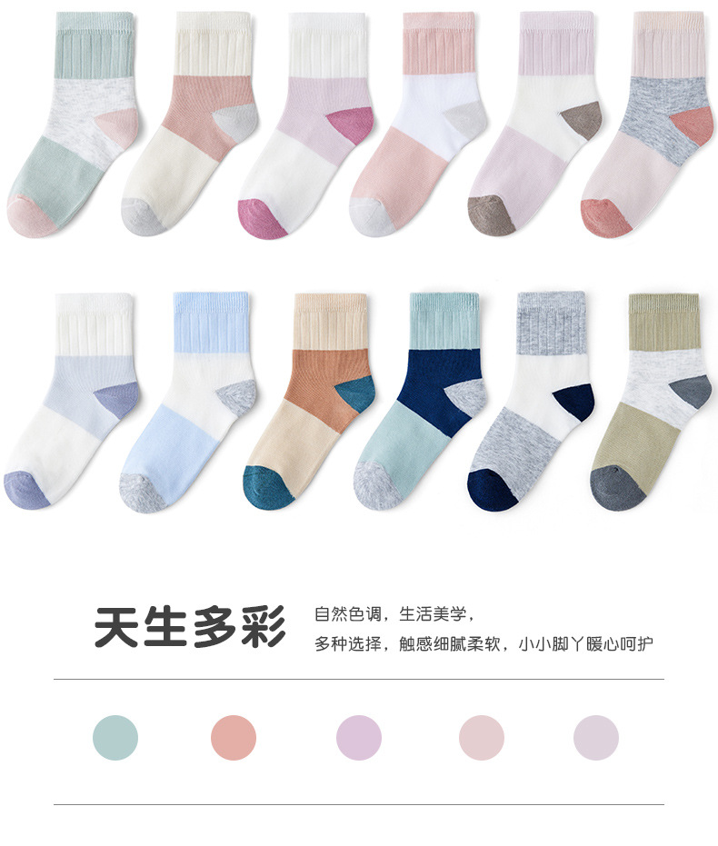 Tangram 줄무늬 어린이 양말 봄과 여름 얇은 소녀 소년 중형 및 대형 어린이 빗질 면화 양말 통기성 뼈없는스토어 가기