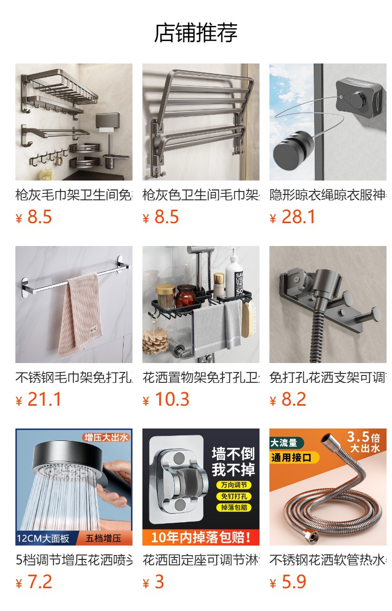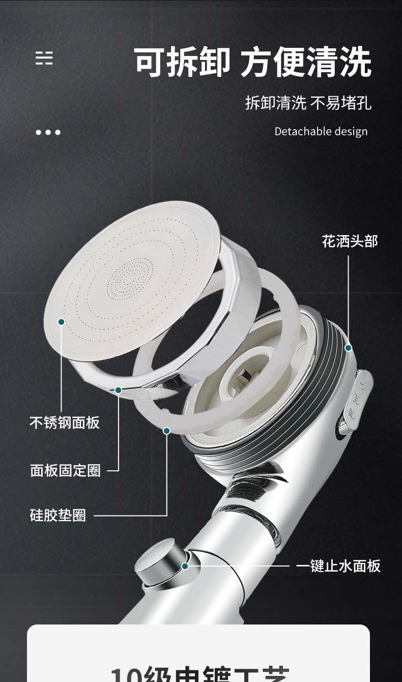 (1)花洒底座是免钉贴片安装。