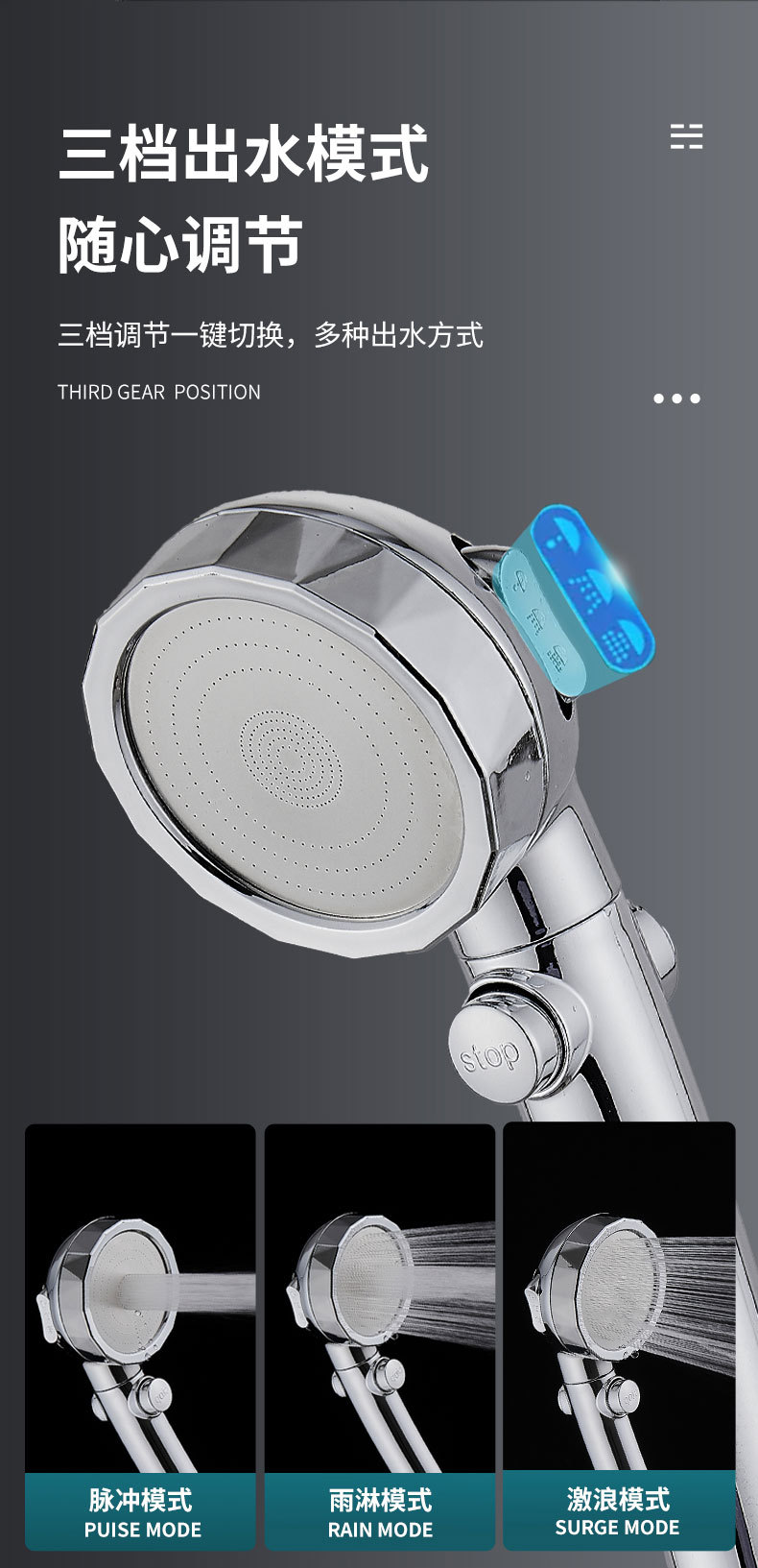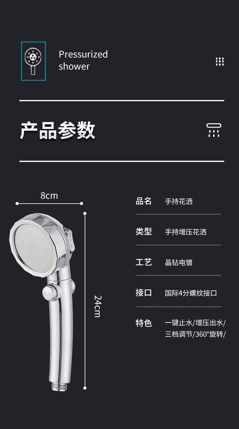 • 백금 크리스탈 다이아몬드 도금 3단 분사 헤드