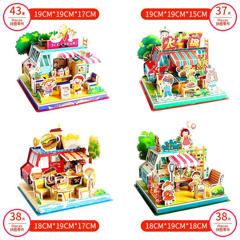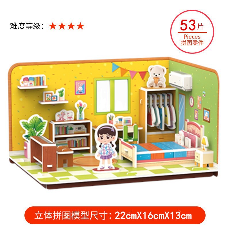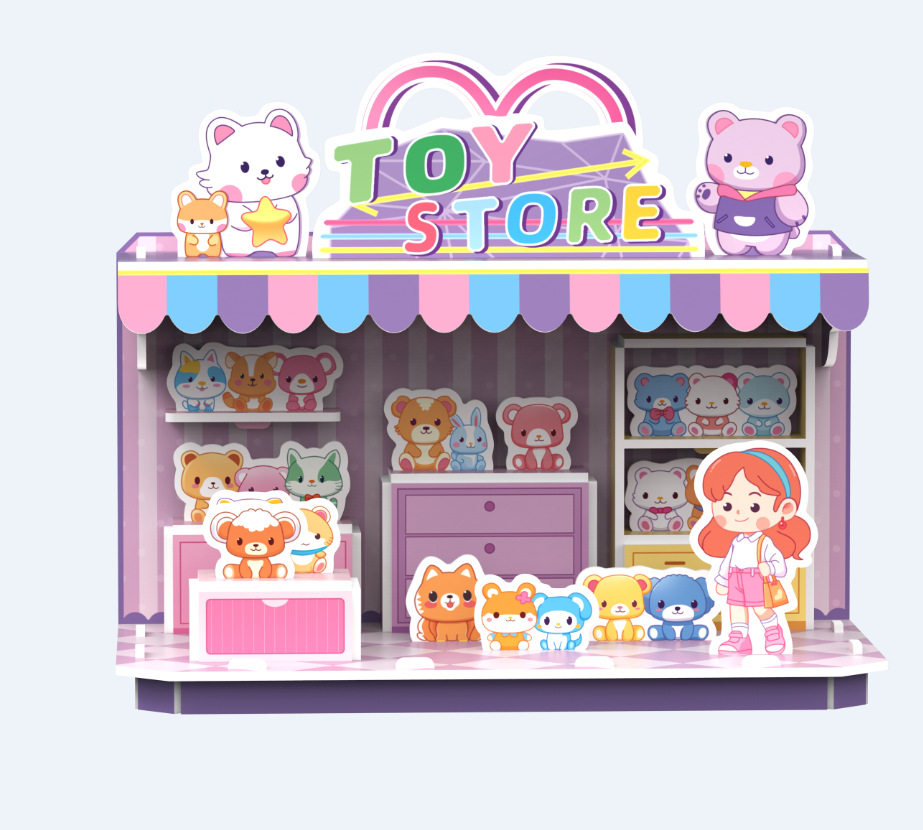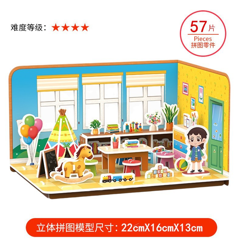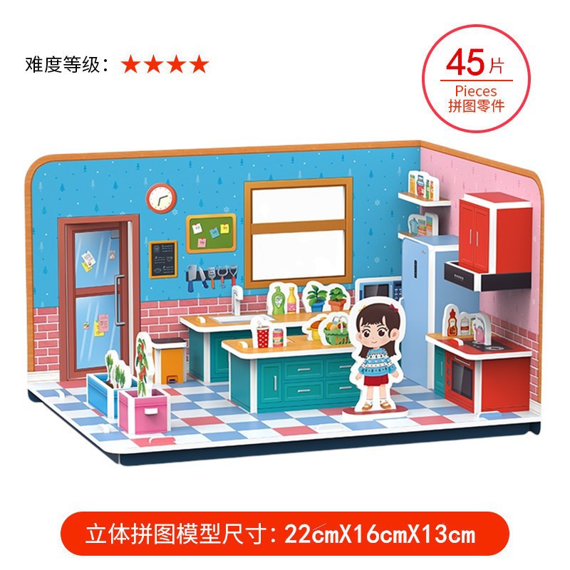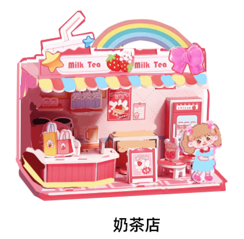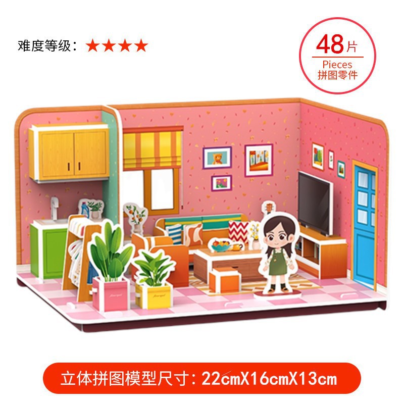 TikTok 폭발 종이 하우스 3D 퍼즐 어린이 조기 교육 어린이 수제 DIY 모델 교육 완구스토어 가기