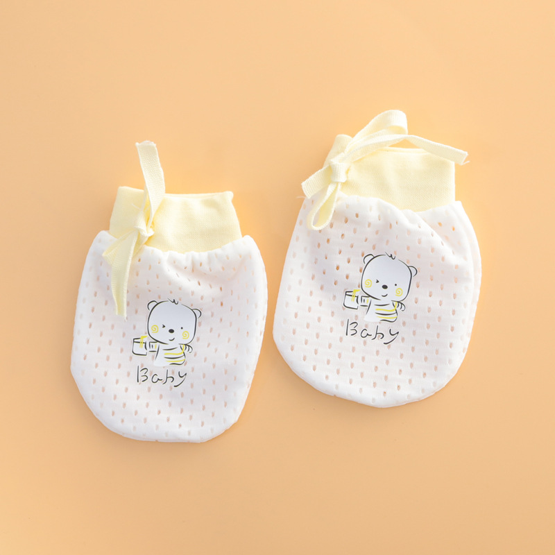 아기 안티 스크래치 메쉬 작은 장갑 여름 얇은 통기성 시원한 높은 탄성 드로 스트링 레이스 업 아기 조절 장갑