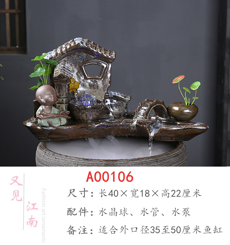 세라믹 자동 순환 물 물고기 탱크 물 흐름 통풍기 필터 장식 물고기 분지 분수 폭포 실내 가정 조경스토어 가기