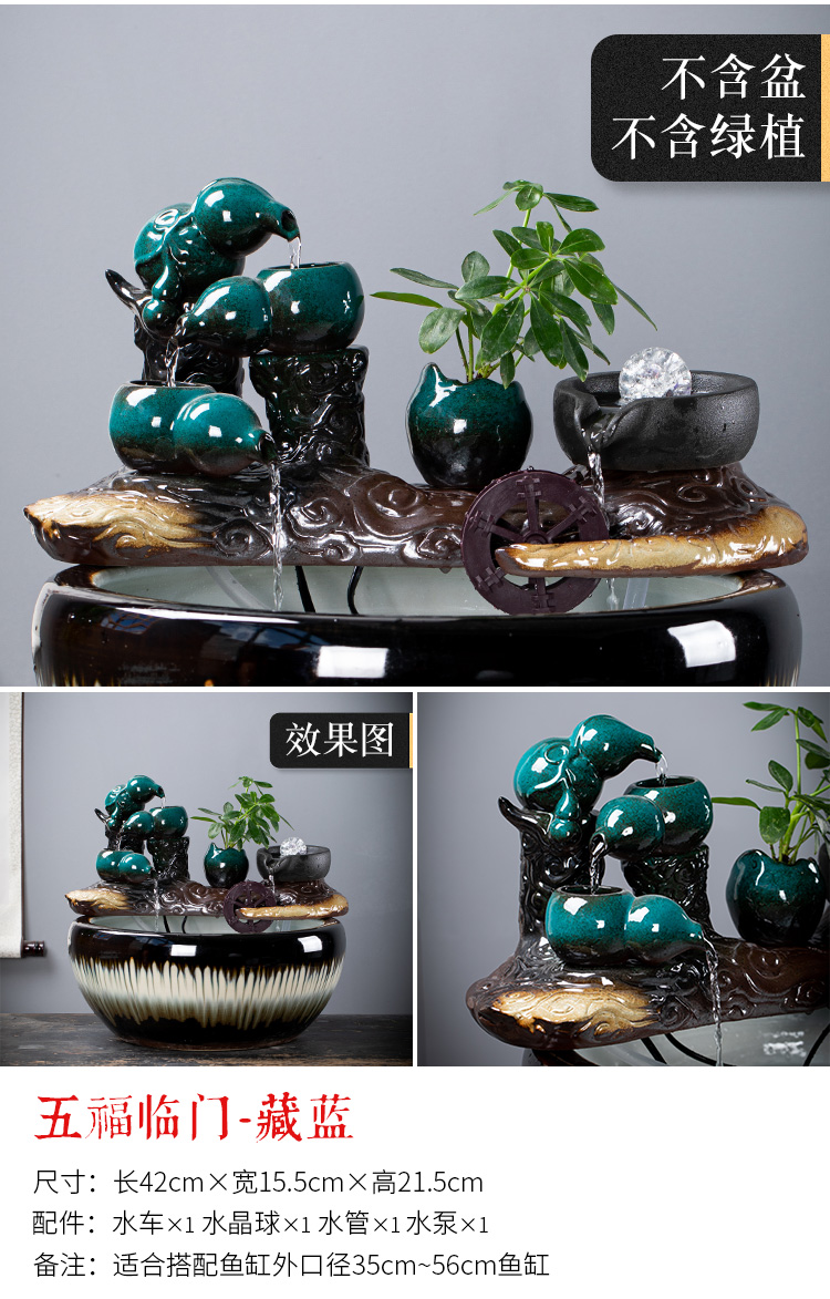 세라믹 자동 순환 물 물고기 탱크 물 흐름 통풍기 필터 장식 물고기 분지 분수 폭포 실내 가정 조경