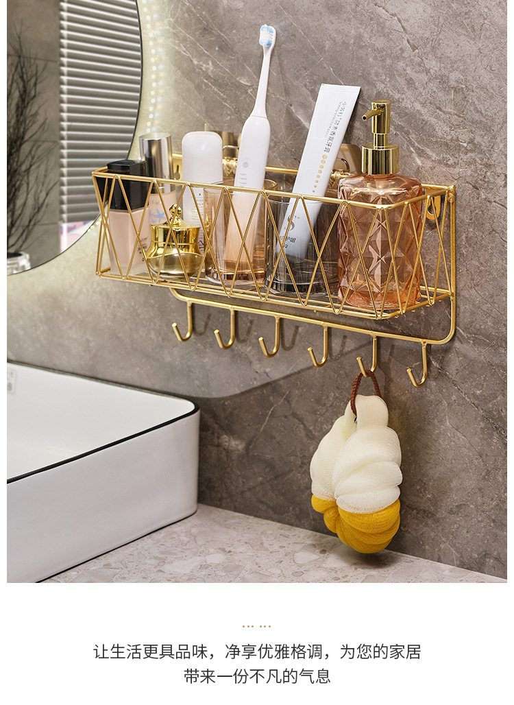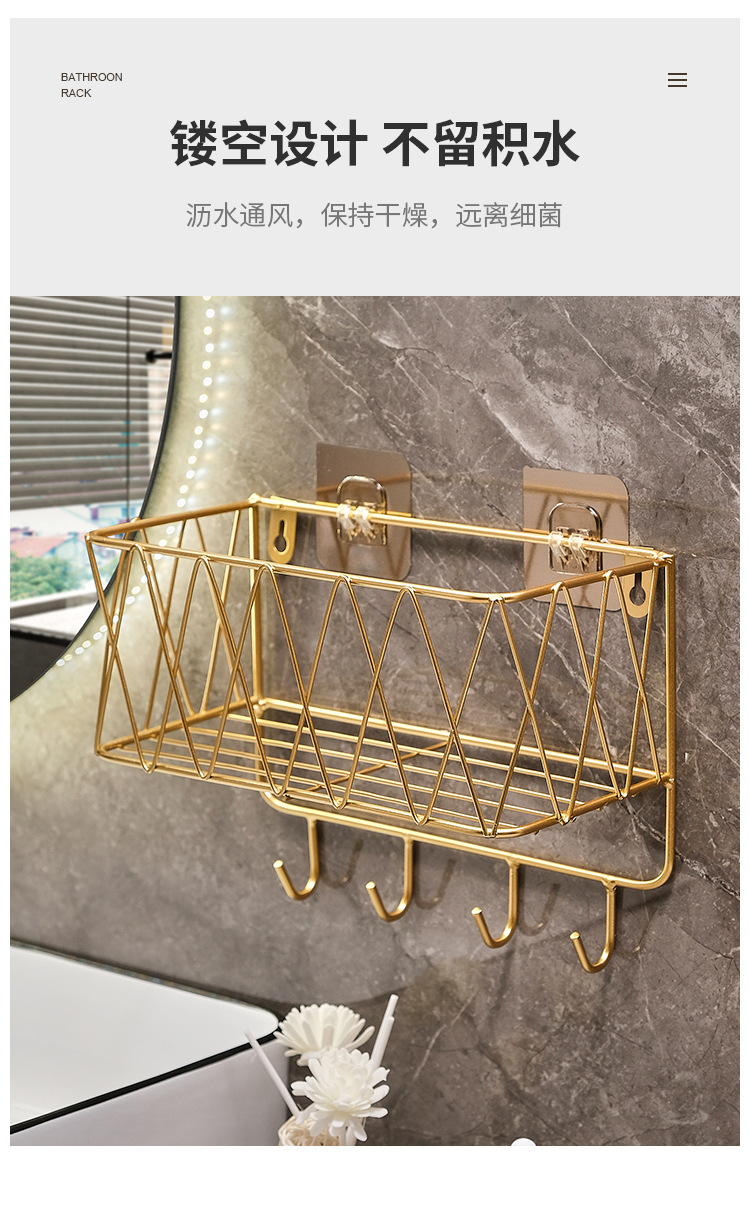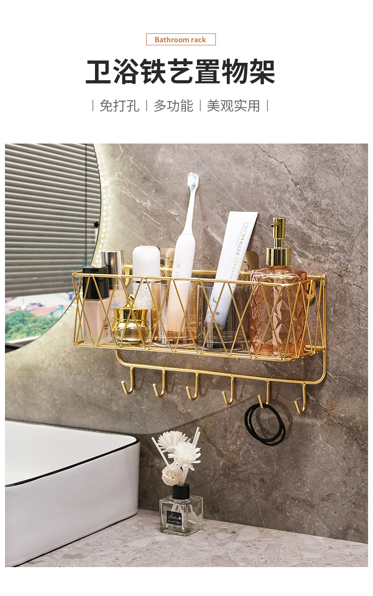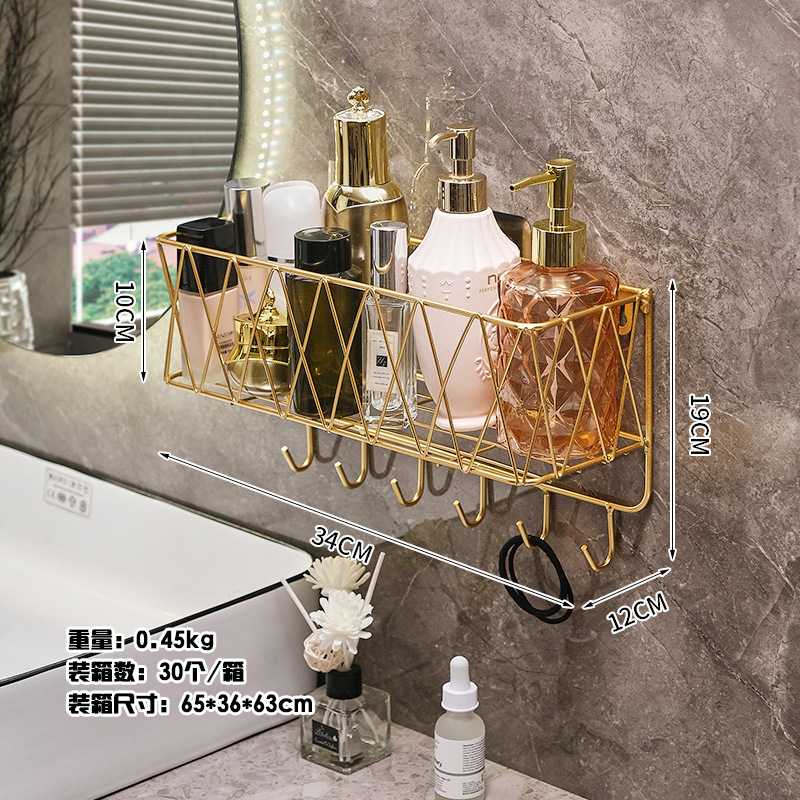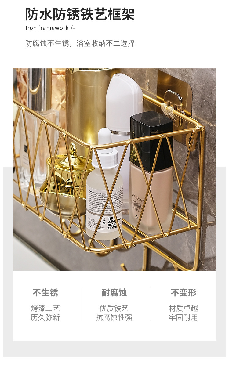 욕실 화장실 수납 선반, 무타공 화장실 벽걸이형 화장품/스킨케어 제품 보관함, 목욕용품 걸이형 철제 선반