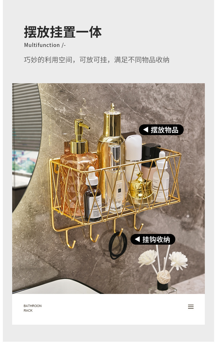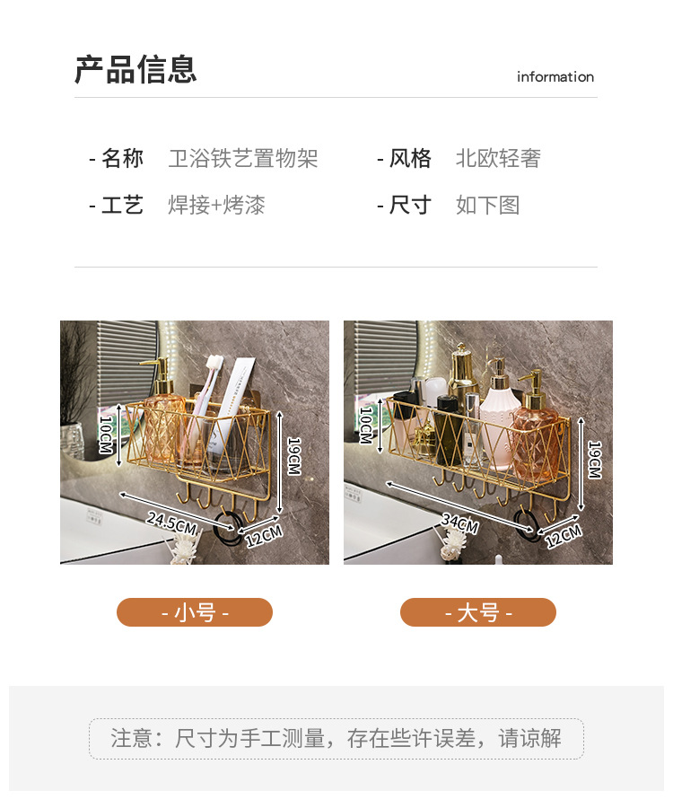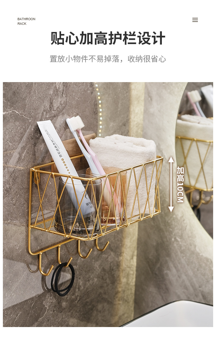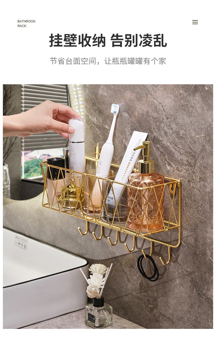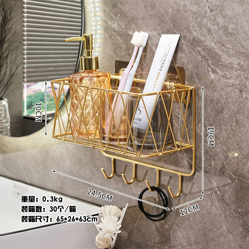 욕실 화장실 수납 선반, 무타공 화장실 벽걸이형 화장품/스킨케어 제품 보관함, 목욕용품 걸이형 철제 선반
